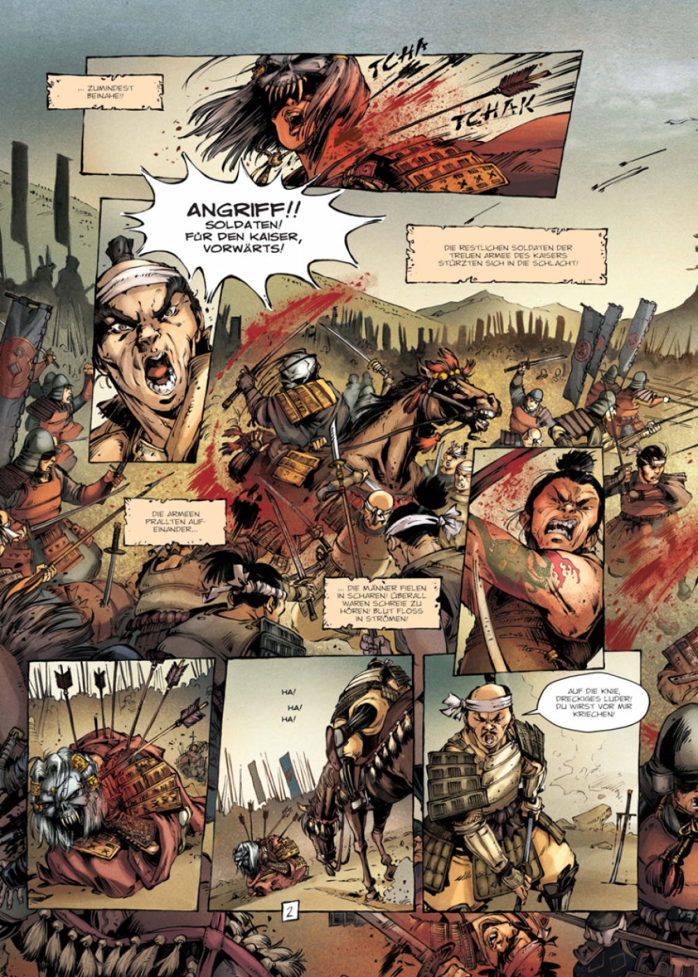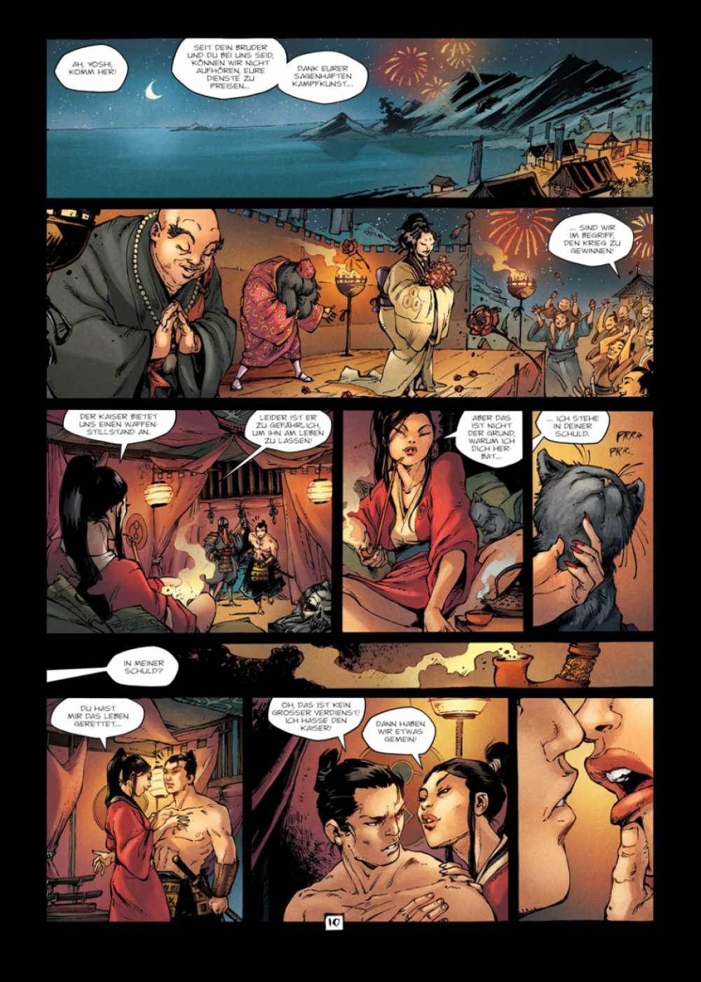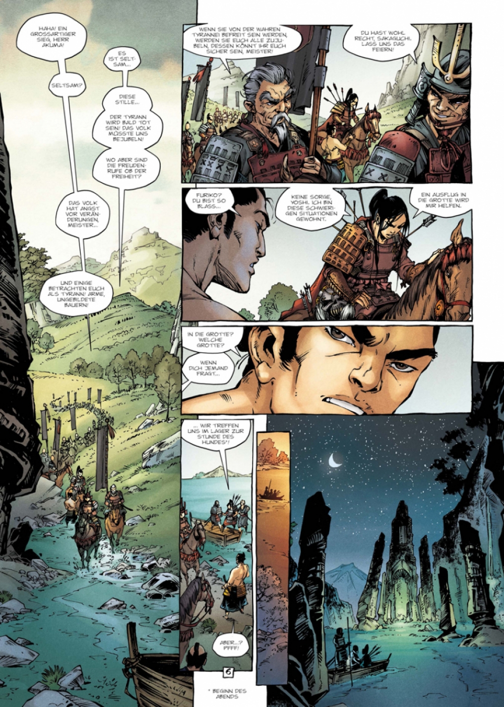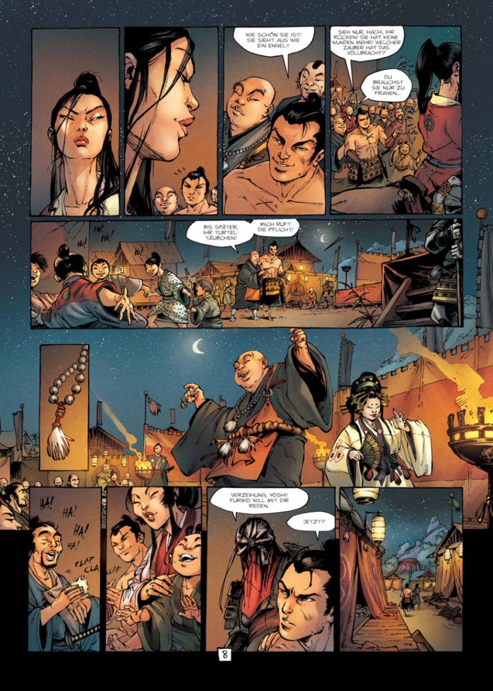 Sieben Söldner überfallen eine junge Frau, die sich gerade nichtsahnend eine Tätowierung stechen lässt – keine gute Idee. Am Ende sind fünf von ihnen tot und zwei auf der Flucht. Damit ist klar, dass es sich nicht um irgendeine harmlose Fremde handelt und dass zugleich jemand sehr großen Wert auf ihre Ergreifung legt. Solch mysteriöse, wenn nicht gar mystische Vorfälle sind in diesem exotischen Umfeld jederzeit möglich, einem mittelalterlichen Japan voller Magie, das den Rahmen abgibt für das Schauspiel, das sich dann mit »Samurai« voll entfalten wird – einem epischen Ringen um Macht und eine dramatische Selbstfindung.