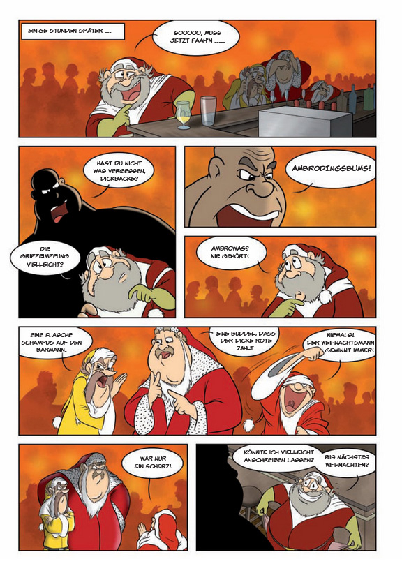 »Santas große Sause – Band 1: Dicke Nase« erzählt eine humorvolle, schräge und charmante Komödie über die persönlichen Probleme von Santa Claus und enthüllt das wohlgehütete Geheimnis, warum der Weihnachtsmann eine dicke Nase hat.