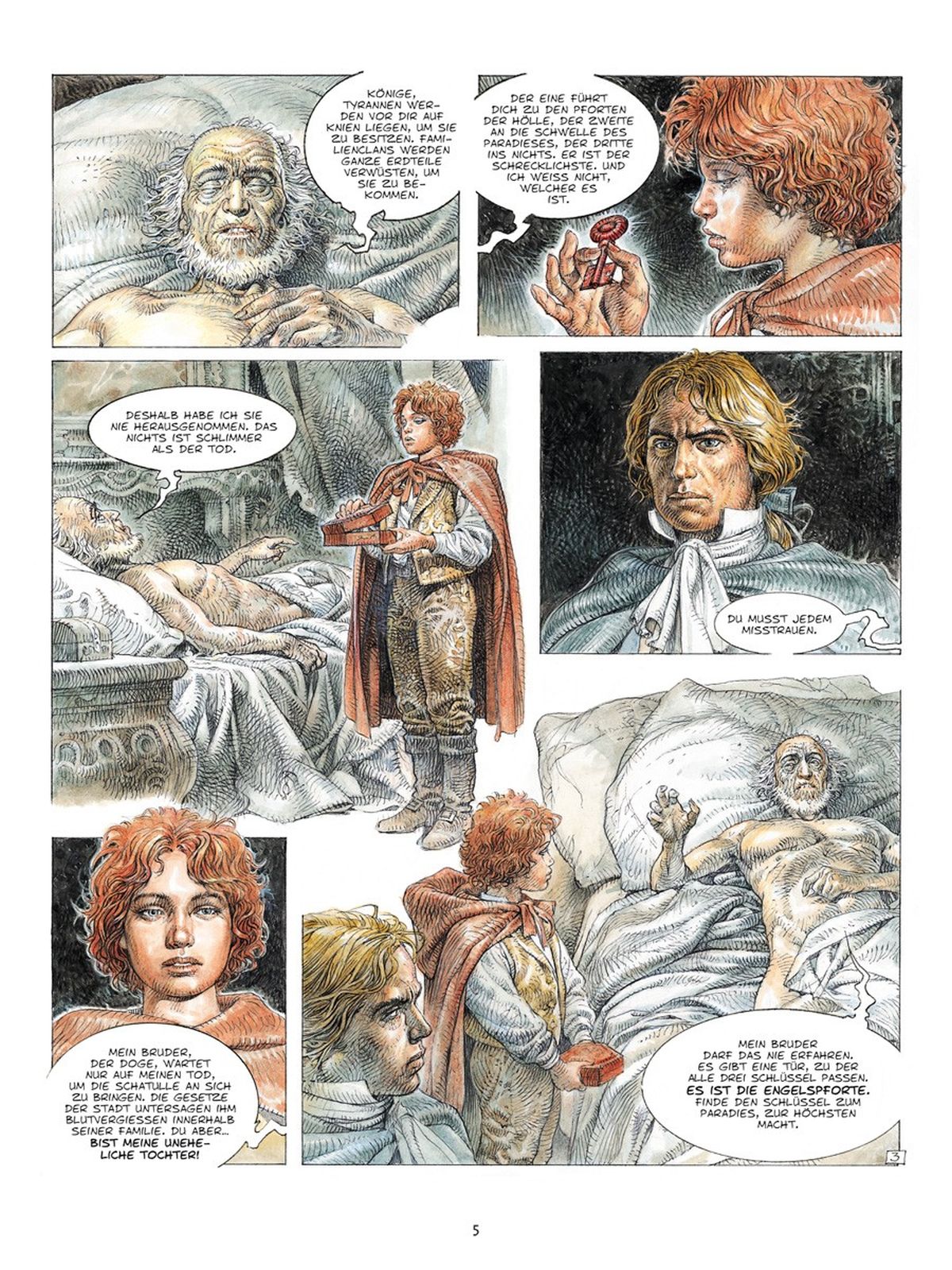 Venedig. Der Prinz Assanti liegt im Sterben. Er vertraut seiner Tochter Saria eine Schatulle mit drei Schlüsseln an, die jeweils einen Zugang zum Paradies, zur Hölle und zum Nichts repräsentieren. In Begleitung von Orlando, einem treuen Diener, flieht die junge Frau aus dem Königspalast und all seinen Gefahren. Sechs Jahre später macht sich die junge Frau, die sich nun Luna nennt, bereit, ihrem Schicksal entgegenzutreten…