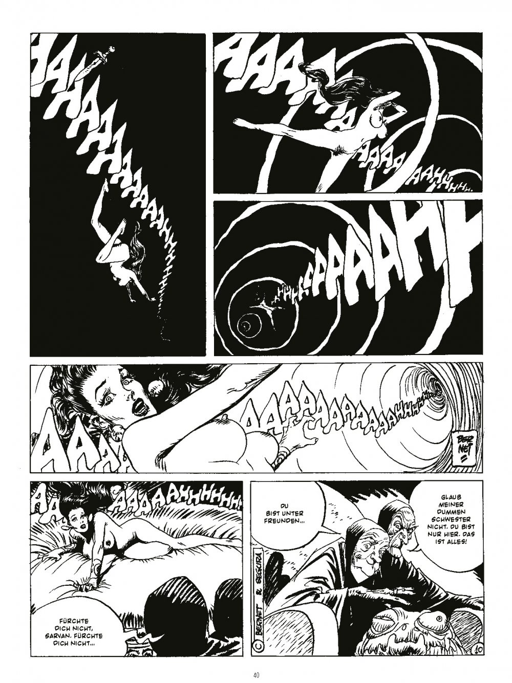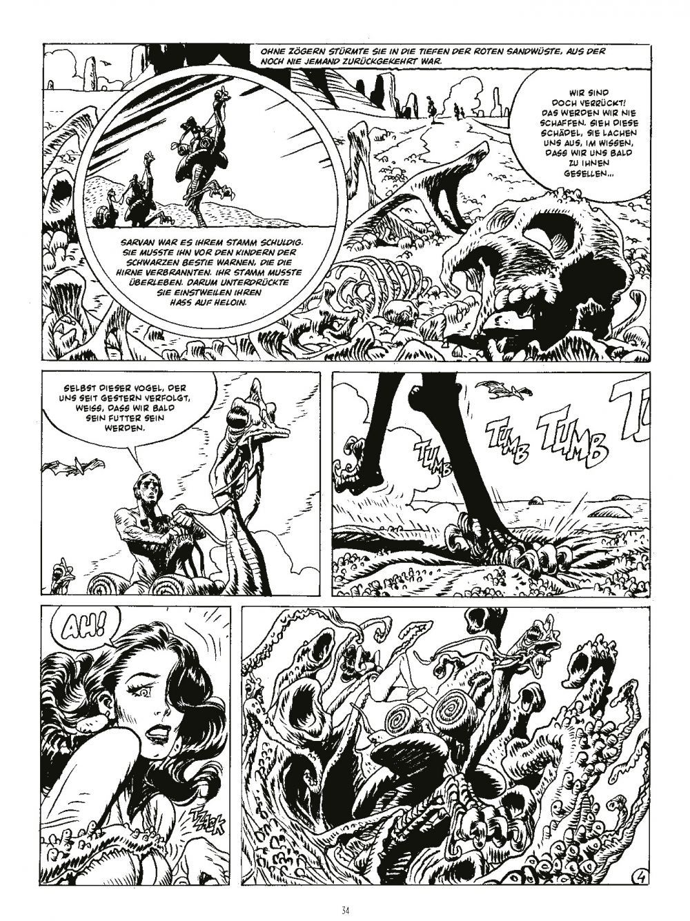 Gemeinsam stellen sich die gerne au naturel agierende Kämpferin und ihr in amourösen Dingen zögerlicher Beau den Gefahren einer von Hexen, Magiern, einem lüsternen Bergwurm und saurierähnlichen Lebewesen bevölkerten Erde, die wirkt, als würde gleich ein gewisser aus zweitausendjährigem Tiefschlaf erwachter Zehnkämpfer um die Ecke biegen.
