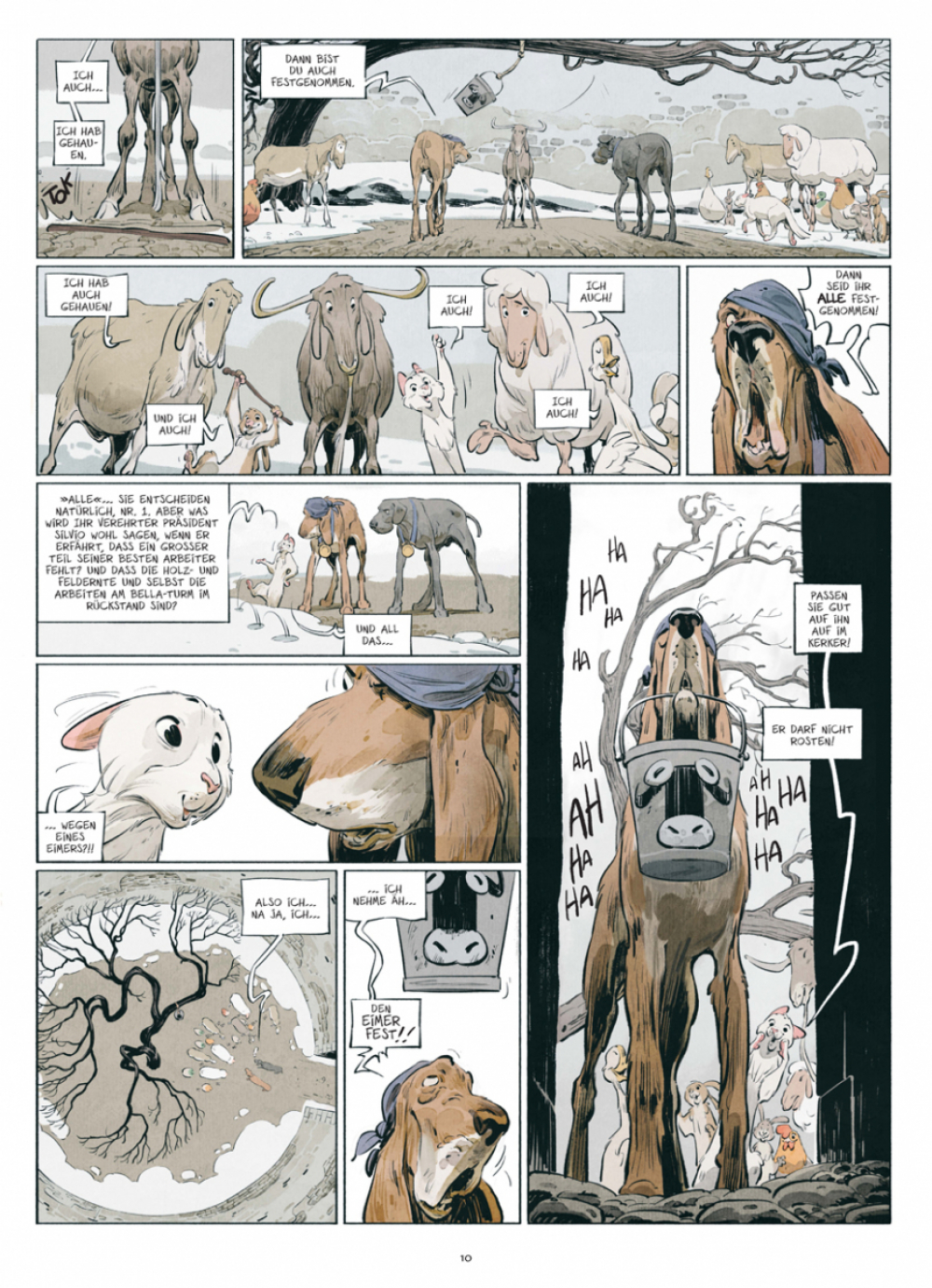 Die Parallelen zur »Farm der Tiere« kommen nicht von ungefähr. Xavier Dorisons (»Long John Silver«, »Undertaker«) scharfsinnige Modernisierung von George Orwells Fabel hält uns einen Spiegel vor, in dem wir unbequeme Wahrheiten erkennen müssen. Der ausdrucksstarke Strich von Félix Delep, der ein eindrucksvolles Erstlingswerk abliefert, haucht seinen tierischen Protagonisten so viel Menschlichkeit ein, dass die Unmenschlichkeit der Diktatur umso stärker hervortritt.
