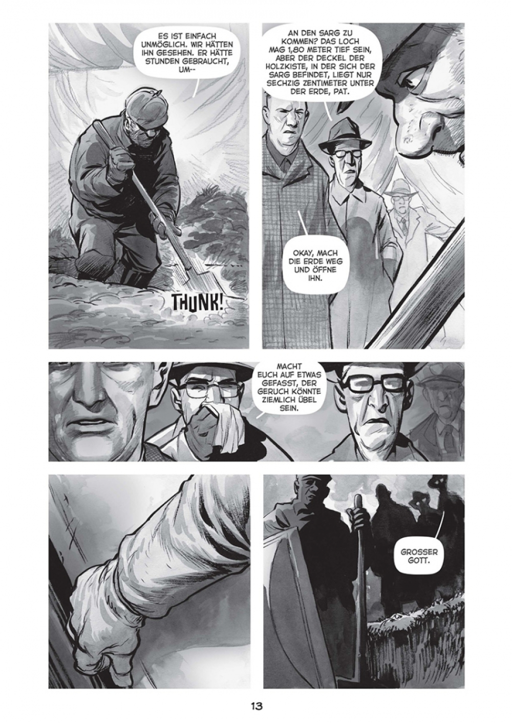Harold Schechter, Experte für True Crime-Stories und Professor für amerikanische Literatur, lässt uns hautnah am Leben und Wirken von Edward Theodore Gein teilhaben. Zwischen einem alkoholkranken, gewalttätigen Vater und einer fanatisch religiösen, herrischen Mutter wuchs Gein zu einem Mann heran, dessen psychische Probleme in mindestens zwei nachgewiesenen Morden sowie Leichendiebstahl und -schändung in zahlreichen Fällen mündeten. Mit Eric Powell (»The Goon«) zeichnet einer der profiliertesten US-Comickünstler unserer Zeit für diese grafisch exzellente Graphic Novel verantwortlich.