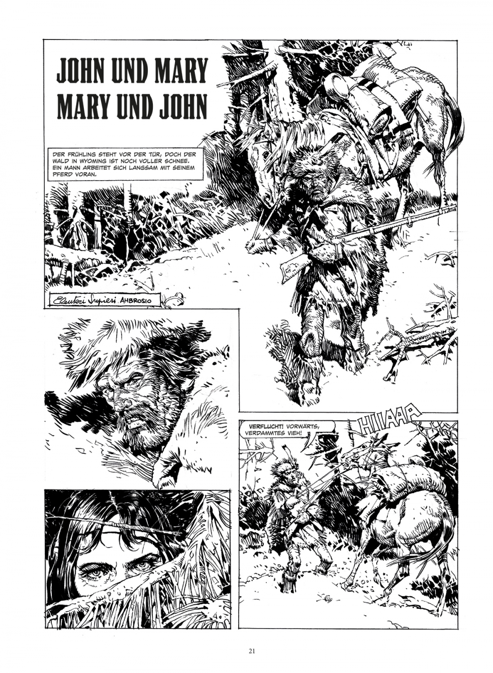 Mit seinem dynamischen und zugleich sensiblen Strich zeichnet Serpieri diese Hommage an eine verlorene Zeit mit ihren einfachen, aber harten Regeln, mit ihrer Freiheit und der Nähe zur Natur.