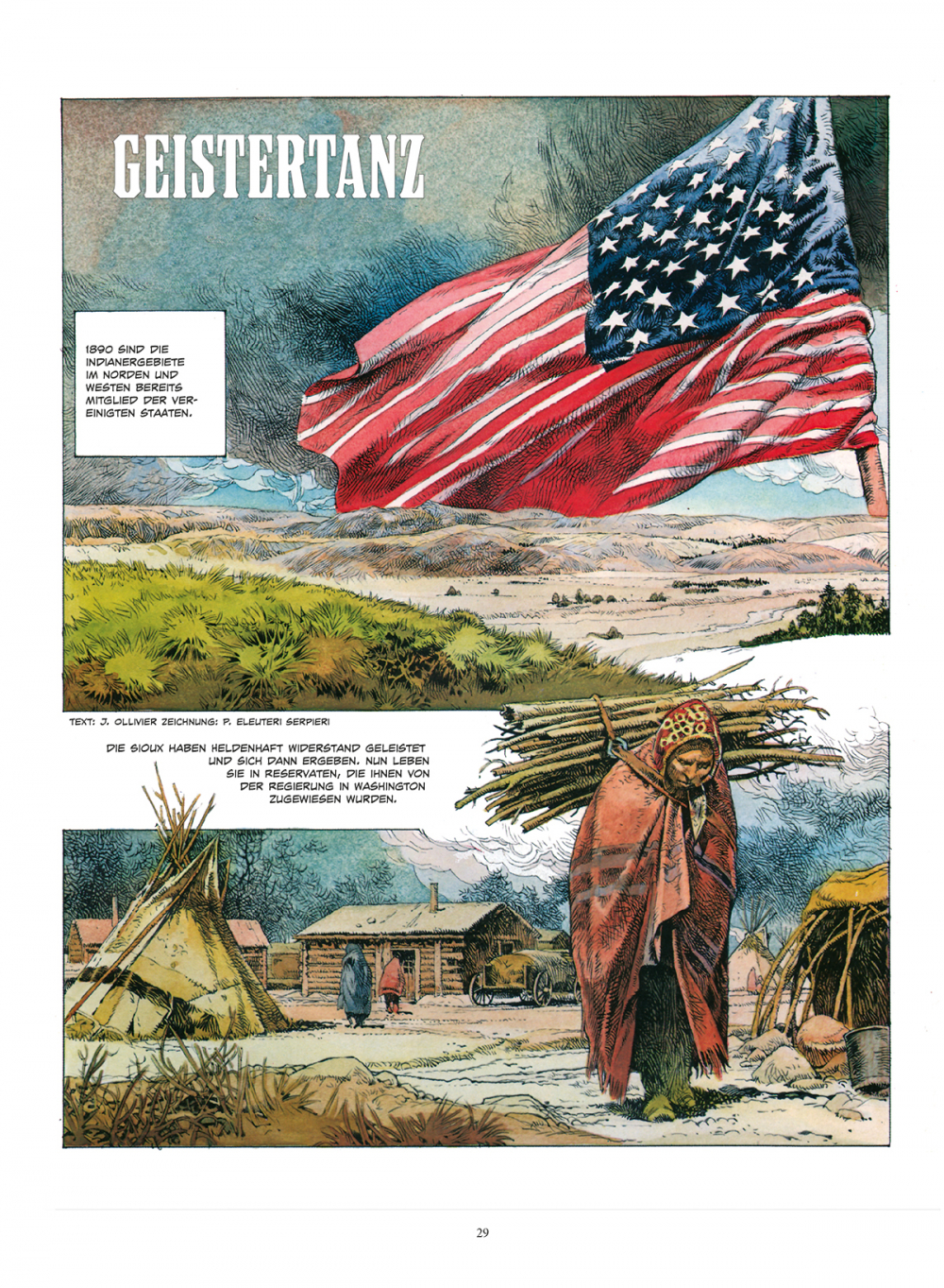 Auch im 4. und letzten Band erzählt Serpieri, der Meister des realistischen Comic, von der Inbesitznahme Nordamerikas durch die Weißen. Es sind Geschichten von Kampf und Heldenmut, von menschlicher Größe und Niedertracht, voller Drama und Blut. Mit seinem dynamischen und zugleich sensiblen Strich zeichnet Serpieri diese Hommage an eine verlorene Zeit mit ihren einfachen, aber harten Regeln, mit ihrer Freiheit und der Nähe zur Natur.