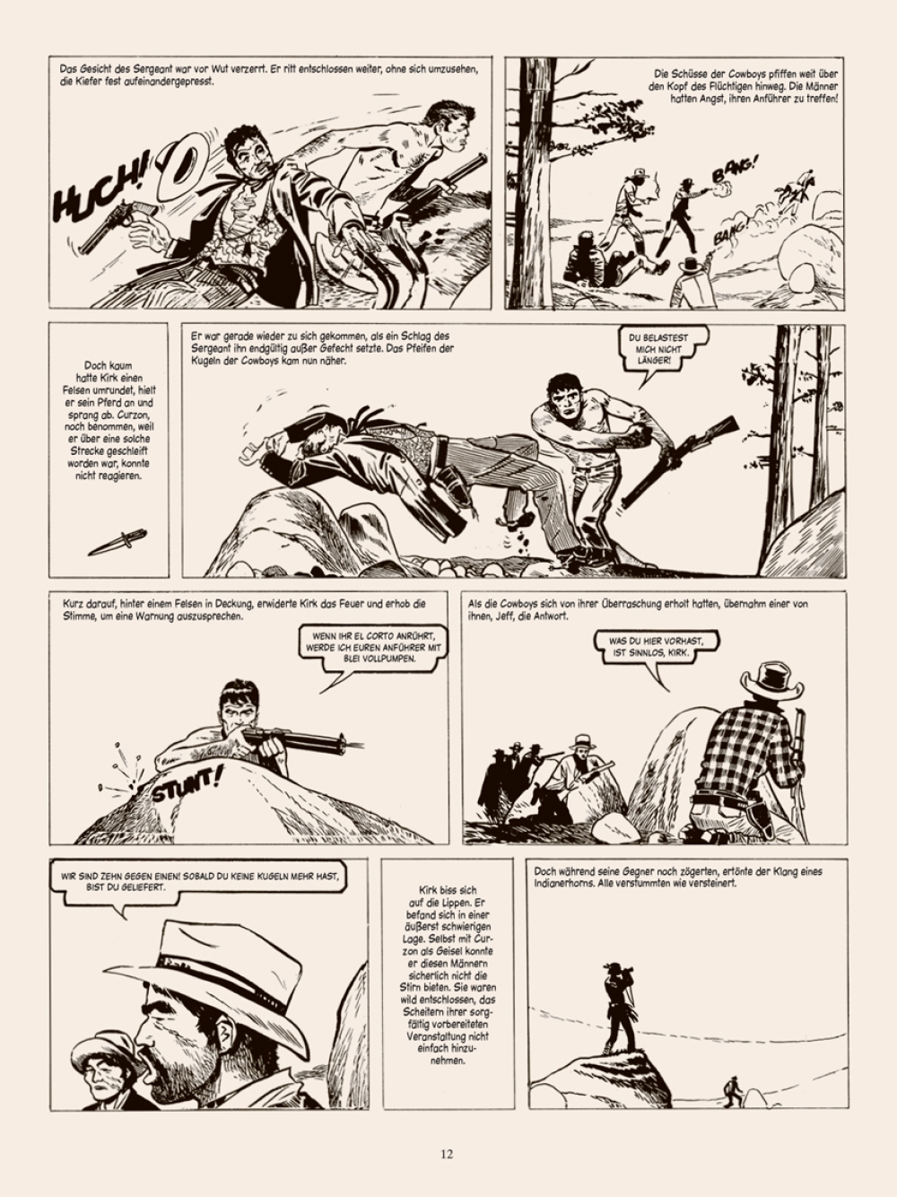 Sergeant Kirk, Deserteur von der 7. US-Kavallerie, hat sich mit seinem Blutsbruder Maha von den Tchatooga zusammengetan. Zu den beiden stoßen der exzentrische Dr. Forbes und der Ex-Bandit The Short („El Corto“, der Kurze). Das ungewöhnliche Quartett muss sich im Grenzgebiet gegen Comanche wehren, aber sie machen auch Jagd auf Corazon Sutton, den brutalsten Killer im ganzen Westen.