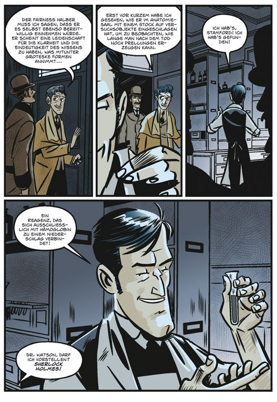 Von dem berühmten Meisterdetektiv aus der Baker Street 221b existieren insgesamt vier Romane, deren Comicadaptionen nun allesamt auf Deutsch erscheinen. A Study in Scarlet wurde erstmals im November 1887 veröffentlicht.