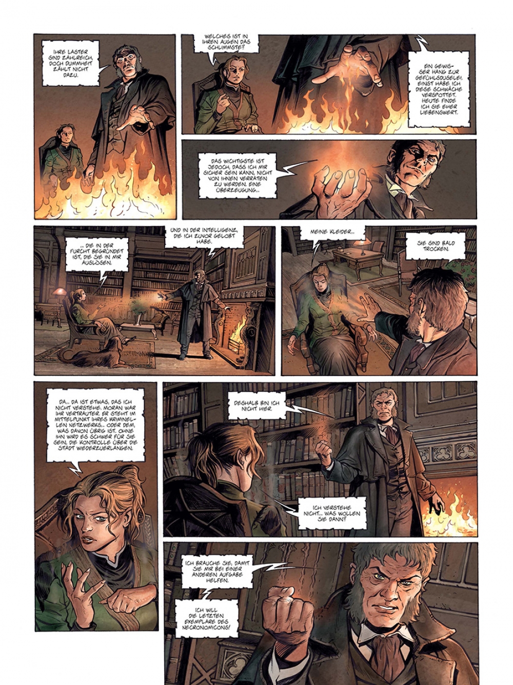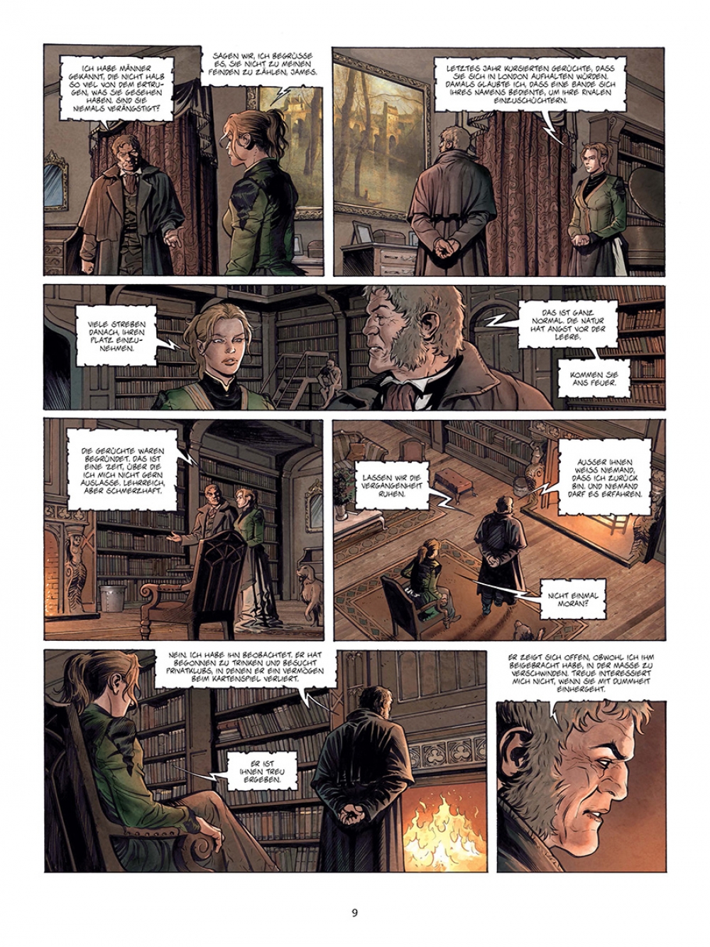 Das »Sherlockversum« wird fortgeführt! Die Grundidee dieser von Sylvain Cordurié konzipierten Reihe ist, Sherlock Holmes, Arthur Conan Doyles berühmten Meister der Schlussfolgerung, mit anderen populären Motiven aus dem literarischen Umfeld seiner Zeit in Verbindung zu bringen. So wurde er bereits mit dem »Necronomicon« konfrontiert, eigentlich eine Erfindung des Horror-Autors H. P. Lovecraft. Nun gerät er einerseits an die »Vampire von London« und bekommt es dann mit Zeitreisen zu tun. Nicht zu vergessen sein Erzwidersacher James Moriarty, der immer wieder für ernste Gefahr sorgt. Nachdem der Beginn ihrer erbitterten Feindschaft schon in »Sherlock Holmes – Crime Alleys« geschildert wurde, ist dieser Personifikation des Bösen jetzt sogar ein eigener Band gewidmet: »Die Chroniken des Moriarty«!