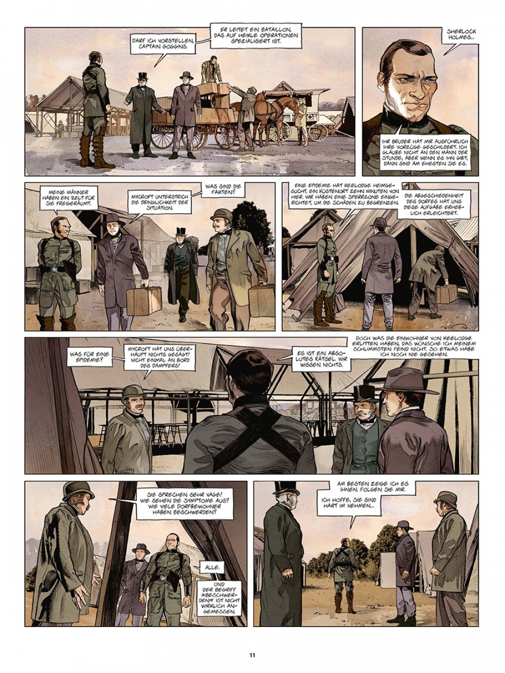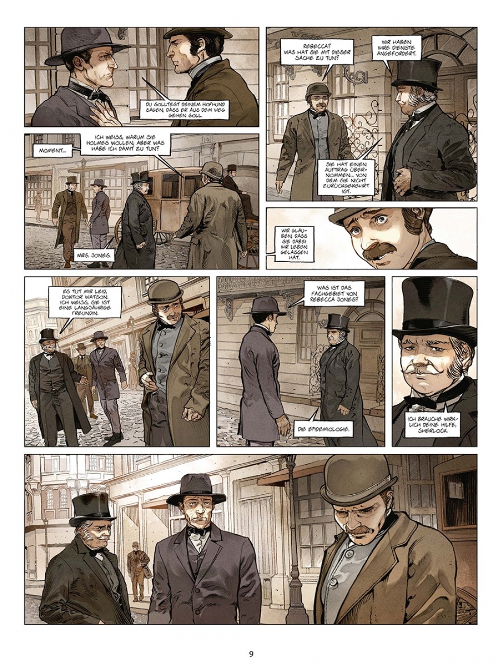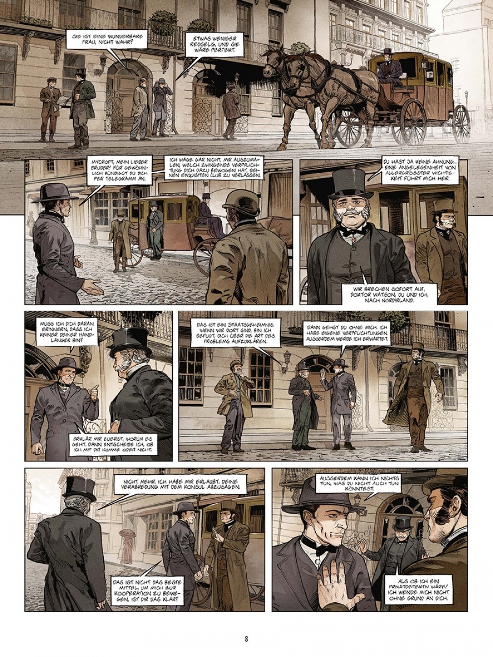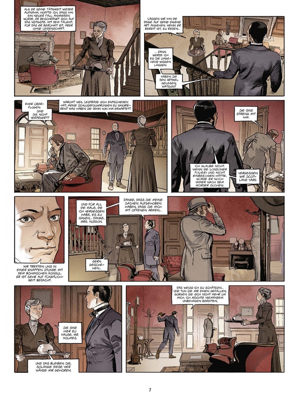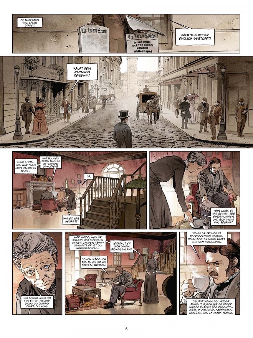 Die »Sherlock Holmes Society« markiert einen Einschnitt in der Laufbahn des Königs der Schlussfolgerung. Nicht nur, dass er von nun an wieder in der Öffentlichkeit agiert. Gleichzeitig ist ihm klarer als je zuvor, dass er zuweilen auch Unterstützer braucht – die »Society« eben. Was ein wenig wohl ebenso für den bewährten Autor des »Sherlockversums«, Sylvain Cordurié, gilt. Darum wird nun jedes Kapitel des neuen »Society«-Zyklus von einem anderen Zeichner gestaltet – mit dem Ergebnis, dass die Ermittlungen von Sherlock deutlich schneller zum Ziel kommen. Seine Fans wird’s freuen.
