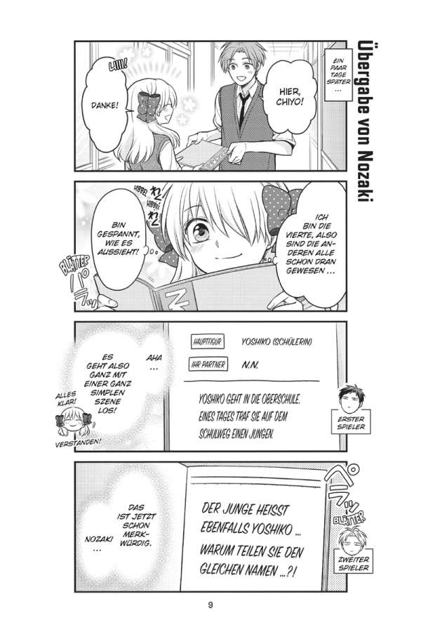 Yuzuki gibt nicht auf! Obwohl ihre Versuche, Hirotaka ihre Gefühle zu gestehen, jedes Mal gescheitert sind, will sie nicht nachlassen. Vielleicht können Yuu und Masayuki ihr ja weiterhelfen – und dabei noch etwas über sich selbst lernen! Währenddessen steht Chiyo Modell für Nozakis neustes Werk. Können Nozaki und Chiyo ihre wahren Gefühle nun endlich offenbaren?