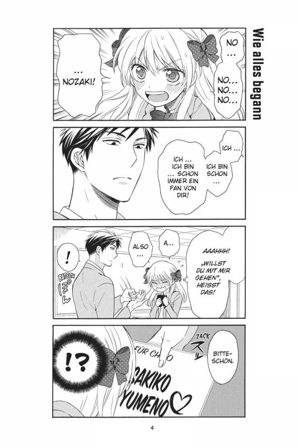 Sakura Chiyo ist 16 – und hoffnungslos in ihren Klassenkameraden Nozaki verliebt. Doch als sie ihm endlich ihre Liebe gesteht, gibt Nozaki ihr ein Autogramm. Und als sie sagt, dass sie mit ihm zusammen sein möchte, lädt er sie zu sich nach Hause ein … und drückt ihr einen Pinsel in die Hand.