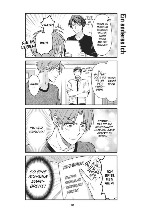 Nozaki ist ein Profi-Mangazeichner. Und um Inspiration zu finden, ist er bereit, alles zu tun! Er testet seine Belastbarkeit mit Horror-Videogames. Er spielt die Rolle der Managerin einer Sport-AG! Aber wartet am Ende auch das romantische Happy-End auf ihn, das zu einem richtigen Shojo-Manga dazugehört?