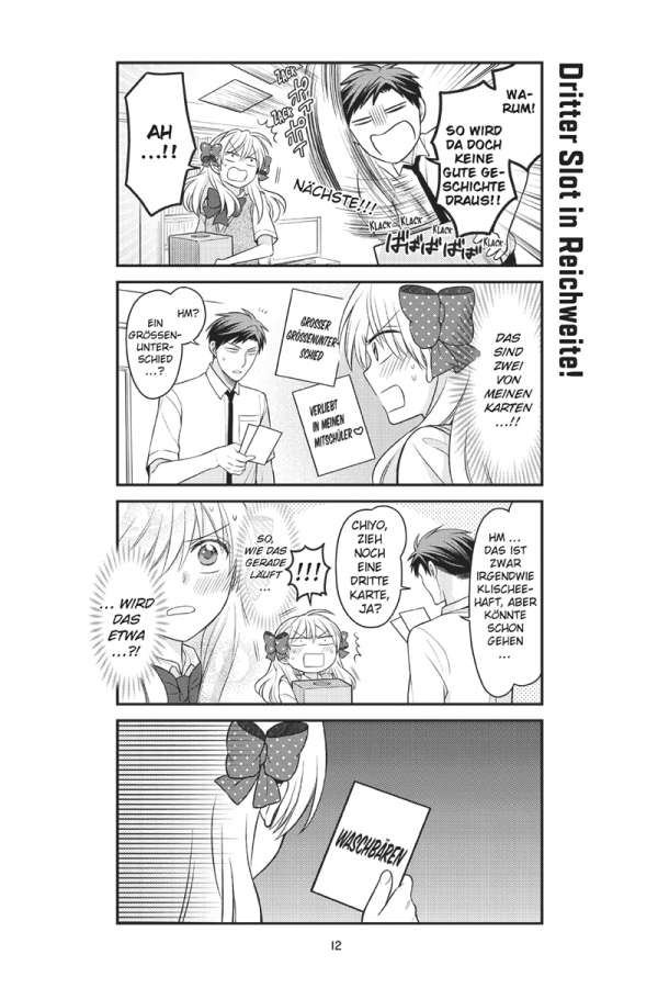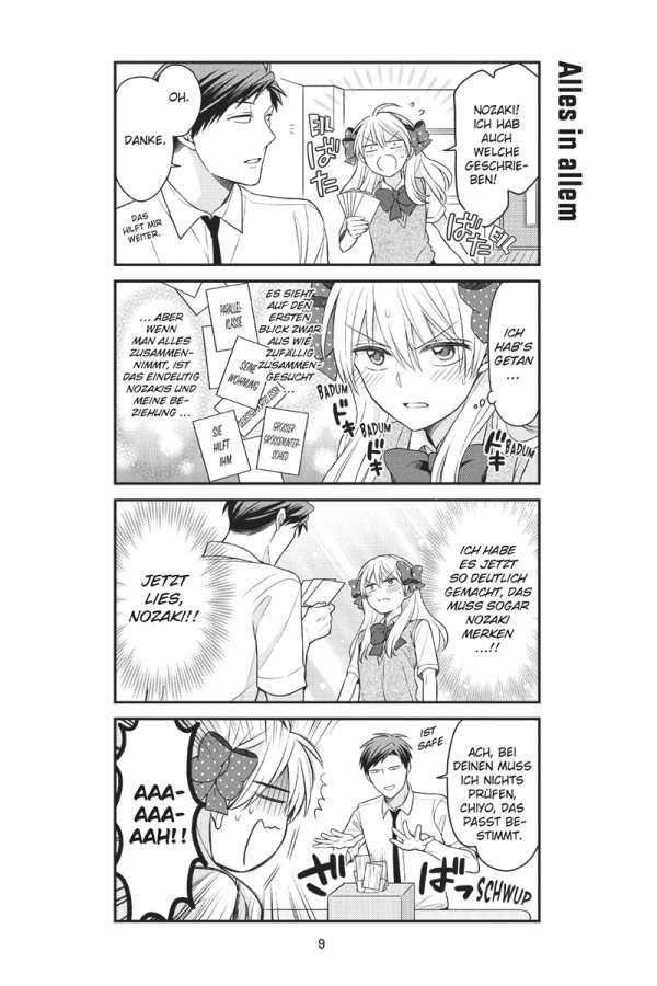 Jetzt werden die Karten neu gemischt! Nozaki steckt in einer Schaffenskrise, aber Chiyo ist schon zur Stelle, um ihm da rauszuhelfen. Und vielleicht kann sie die Gunst der Stunde nutzen, um ihm nicht mehr ganz so subtil ihr Liebe zu gestehen?