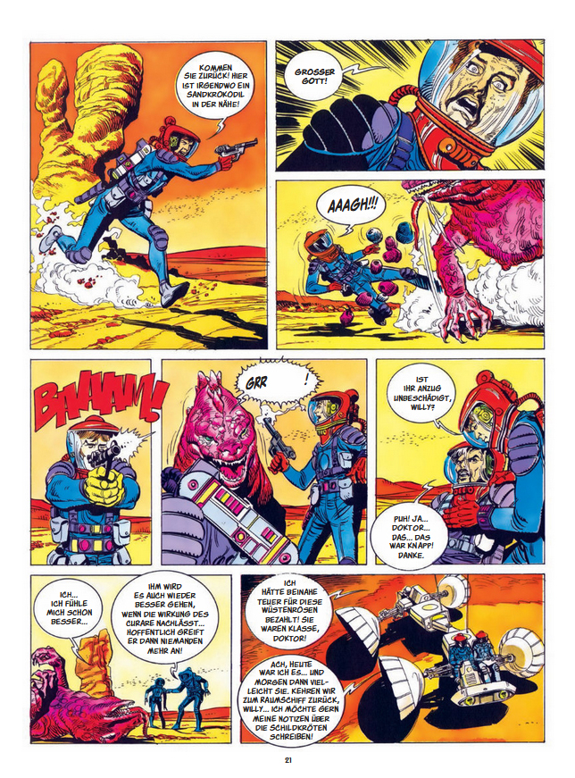 Dieser Band präsentiert die folgenden Abenteuer in chronologischer Reihenfolge: »Im Griff der Kralle«, »Gefahr lauert auf Pluvia«, »Planet der Verdammten«, »Titanen des Weltraums« und »Die grünen Ebenen Arcadias«