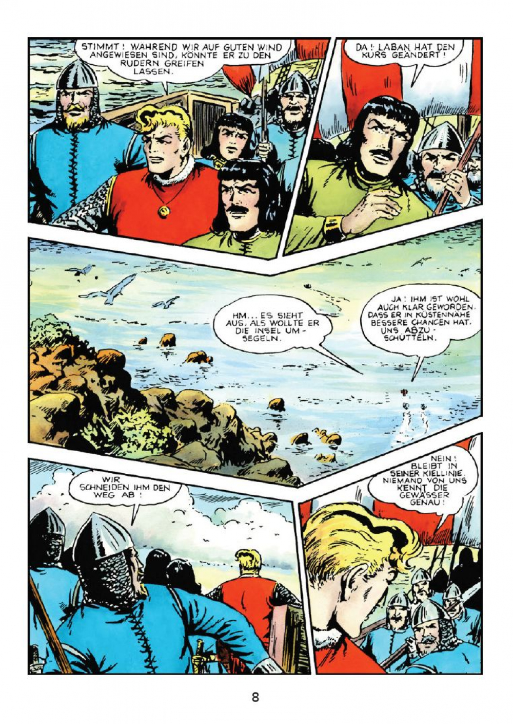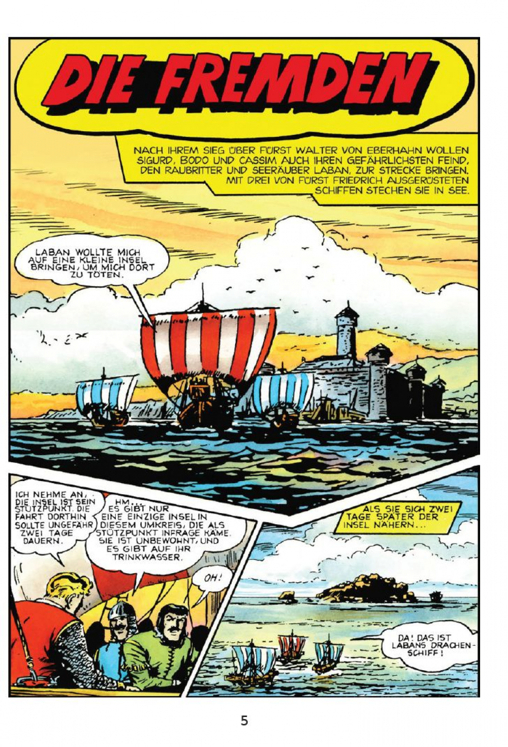 Sigurd und seine Freunde Bodo und Cassim wollen ihren Erzfeind Laban endlich besiegen. Sie folgen seinem Schiff zu der Insel, von der aus der Seeräuber seine neuerlichen Raubüberfälle durchführt. Unglücklicherweise können die drei ihn und seine Gehilfen dort nicht überwältigen, sondern kommen selbst in eine bedrohliche Lage. Nur Sigurd kann entkommen und sich vor der Übermacht der Piraten verstecken. Von seinem Unterschlupf aus muss er zusehen, wie plötzlich ein fremdartiges Schiff anlandet und die merkwürdig gekleidete Besatzung Laban und seine Männer, aber auch Bodo und Cassim gefangen nimmt. Sie alle werden in ein unbekanntes Land verschleppt. Nur über Umwege und mir hohem Aufwand gelingt es Sigurd, ihnen zu folgen.