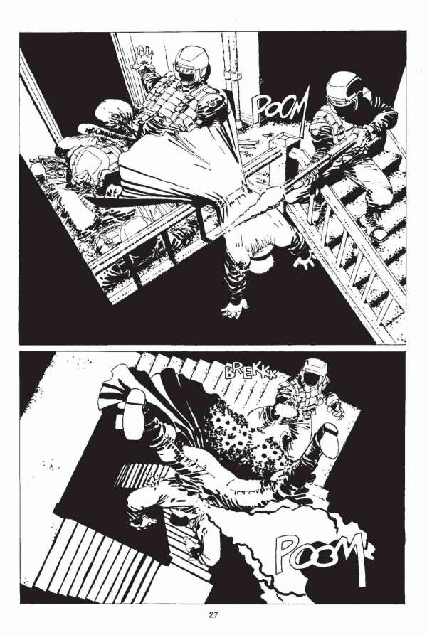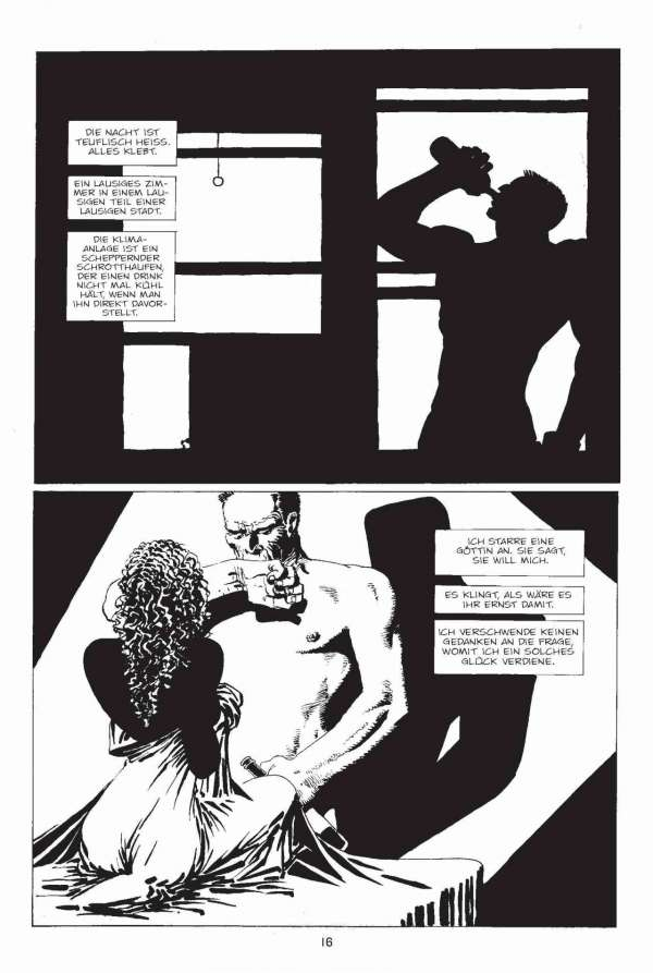 Mit einem Knall verabschiedete sich Miller vorläufig von den Comics: Zusammen mit dem Ausnahmezeichner David Mazzucchelli kreierte er einen abschließenden DAREDEVIL-Zyklus (BORN AGAIN), und die Batman-Story YEAR ONE, in der die Anfänge des Dunklen Ritters beleuchtet wurden. In den folgenden vier Jahren versuchte Miller als Drehbuchautor in Hollywood Fuß zu fassen. Nach einigen eher mäßigen Erfolgen (ROBOCOP 2+3) kehrte Miller 1991 zum Comic zurück und lief mit SIN CITY wieder zur Höchstform auf. Er erzählte eine geradlinige Kriminalstory, die von ihm zeichnerisch zurückhaltend, aber mit allen Raffinessen umgesetzt wurde.