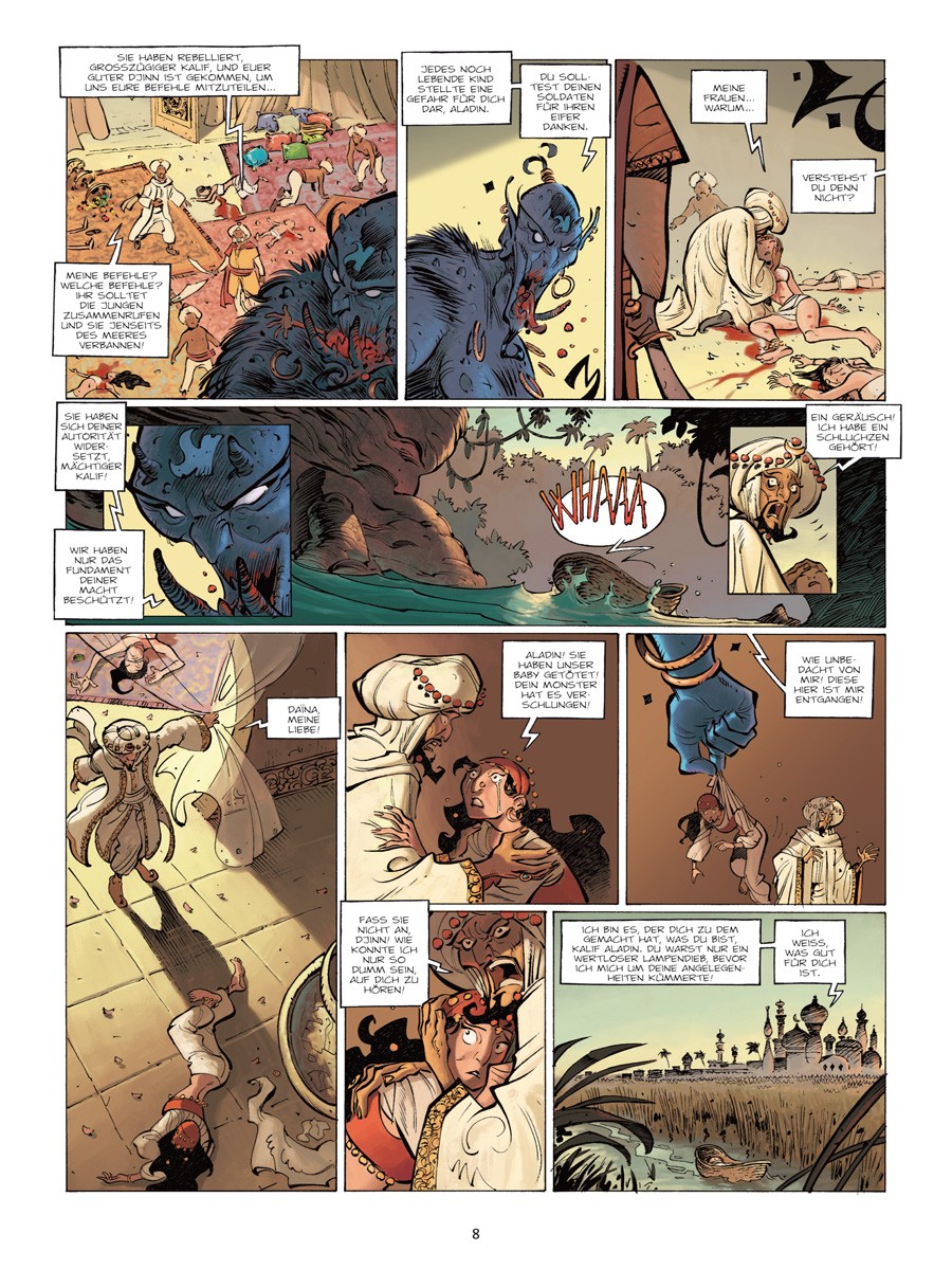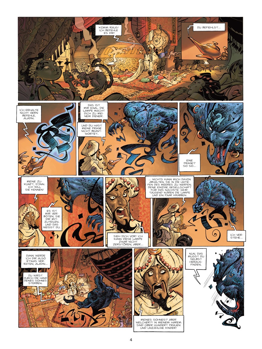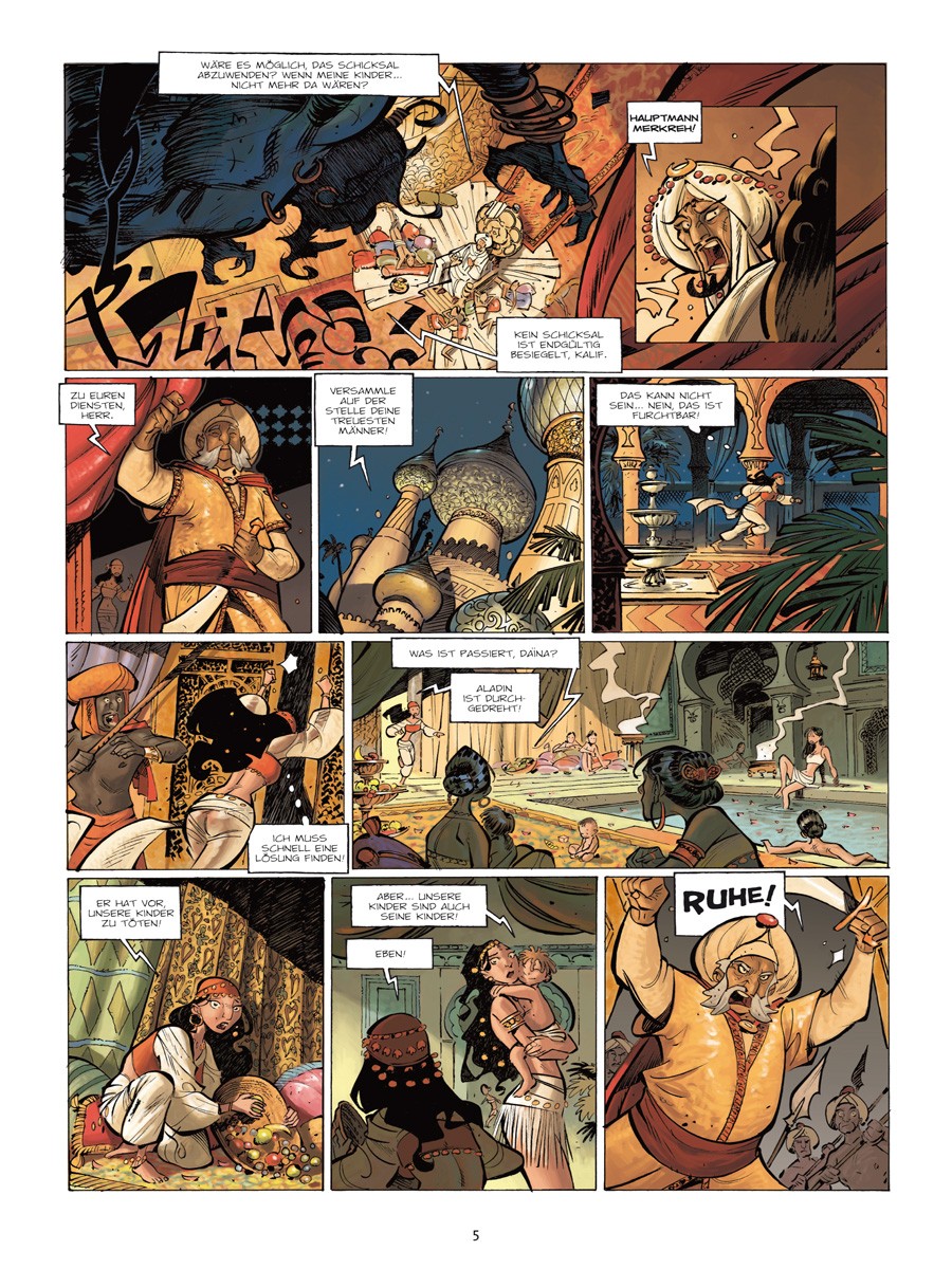 Dank der Kräfte des fi nsteren Djinn wurde Al-a-din endlich zum Kalifen gekrönt. Doch eine Weissagung eröffnet ihm, dass er durch die Hand seines eigenen Sohnes sterben wird! Und Söhne hat er Dank seines riesigen Harems einige Dutzend...