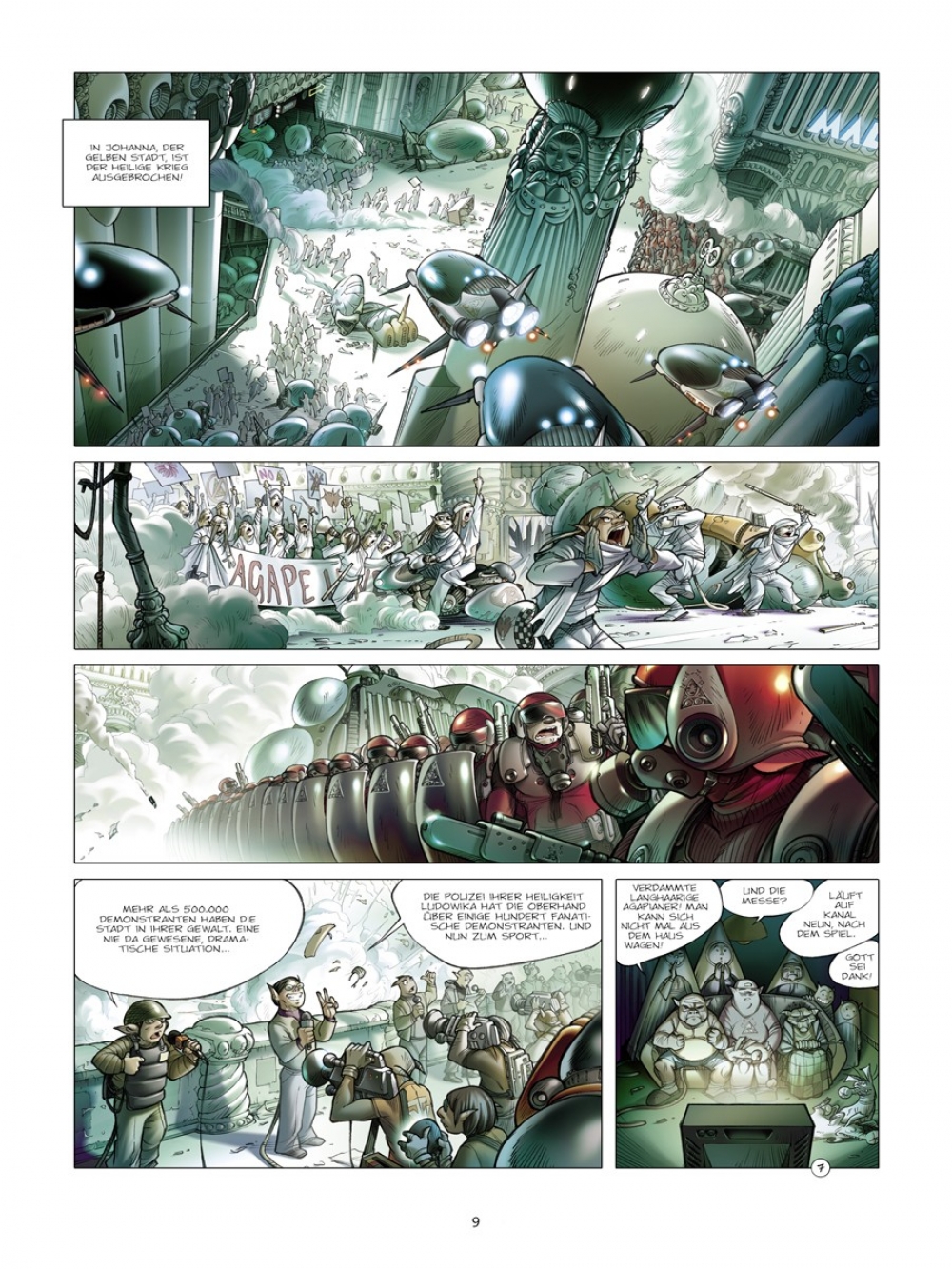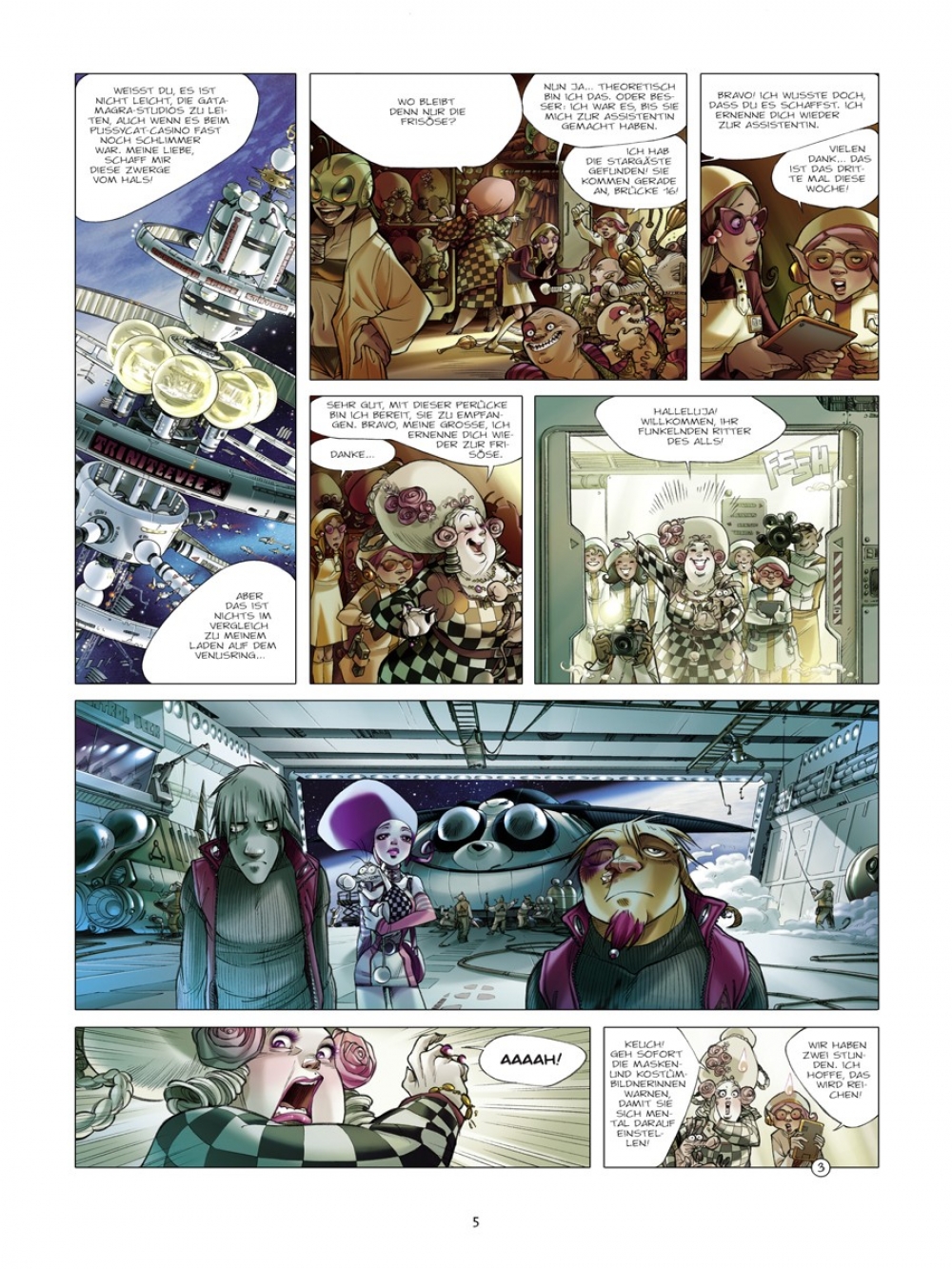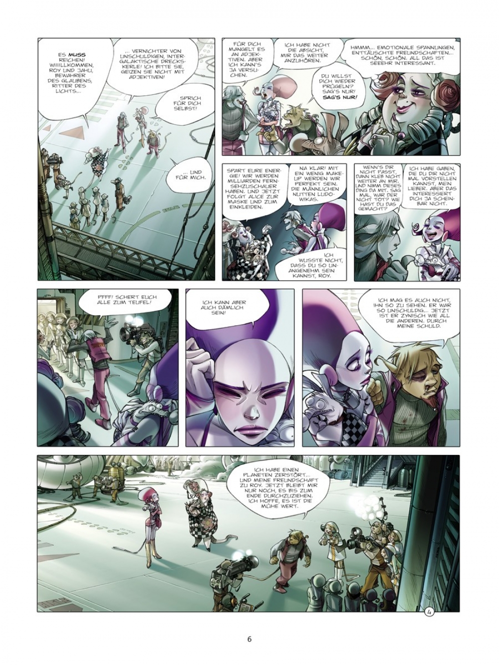 Mit der Kurzgeschichtensammlung Skydoll Collection hielt das Skydoll-Universum bereits Einzug ins Splitterprogramm. Nun folgt die berühmte Hauptserie rund um die attraktive Androidin Noa, die sich dem strengen Arbeitspensum ihres Besitzers Gott, einem Astrowaschanlagenbesitzer, entzieht, die Flucht nach vorn antritt - und direkt in einen Konflikt von intergalaktischem Ausmaß in einer irrsinnigen, bizarr-barocken Cyberpunk-Welt voller Insignien der Pop-Art, der Digitalen Kunst, Mythologie und Popkultur gerät.