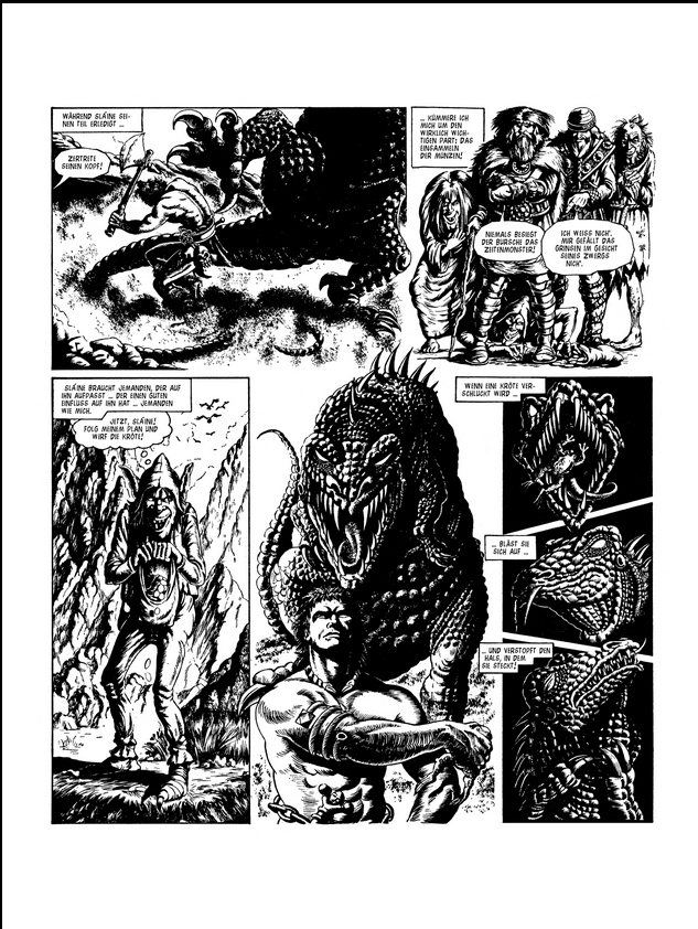 Tír na nÒg, das Land der ewigen Jugend, ist eine von Gewalt bestimmte Welt, in der einander bekriegende Stämme Götter verehren, die mildtätig und huldvoll sein können – aber auch arglistig und grausam. In dem hier vorliegenden ersten Band einer Reihe, in der die Abenteuer Sláines in chronologisch richtiger Folge präsentiert werden, machen wir die Bekanntschaft eines solchen Stammes. Die Sessair sind mutige und ungemein geschickte Krieger, und der beste unter ihnen ist ein junger Wildling namens Slàine Mac Roth. Sláine ist, unter anderem, ein Meister des Verwindungskrampfs, eines Blutrauschs, der denjenigen befällt, der in der Lage ist, die sich aus der Erde emporwindende Schlangenkraft in seinen Körper aufzunehmen, um sich in einen schier unbezwingbaren Berserker zu verwandeln.