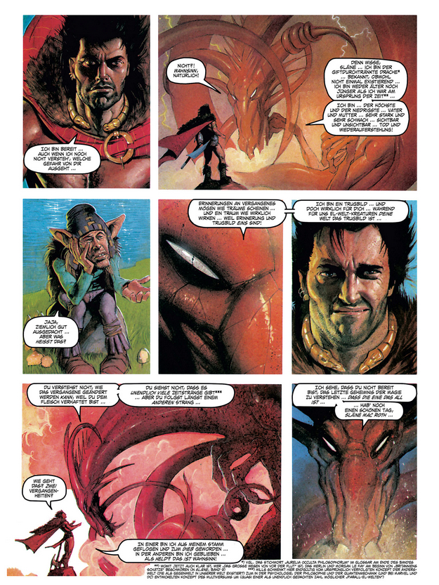 Sláine ist weiterhin im Auftrag Danus unterwegs, erst um 1300 in Schottland und dann achtzig Jahre früher in Südfrankreich, wo er auf den Kreuzzügler Simon de Montfort trifft, den Todfeind der Katharer. Während Sláine nach der gequälten Seele seiner gelibten Niamh sucht, die in dieser Zeit wiedergeboren worden sein soll, muss er mit de Montfort gemeinsame Sache machen … denn er braucht den Gralstein. Den Gral zu finden, ist natürlich noch nie eine auch nur annähernd einfache Angelegenheit gewesen. Aber Sláines Queste wird zusätzlich durch Gnostiker, Magier und El-Wesen aus der Anderswelt erschwert, die nicht wollen, dass er Niamhs Seele rettet! Da werden wohl ein paar Köpfe rollen. Und … wo steckt eigentlich Ukko?