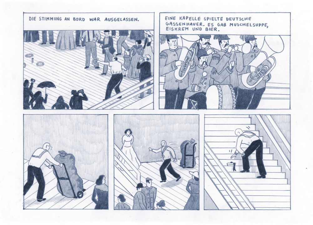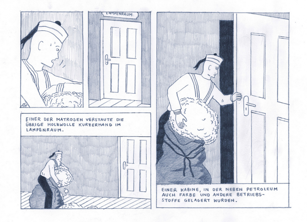 Vor dem Hintergrund dieses historischen Ereignisses entspinnt sich ein schwarzhumoriges Kammerspiel. Drei Matrosen, bislang damit beschäftigt, immer wieder das gleiche Rettungsboot zu streichen, sehen sich auf einmal mit einem Flammeninferno konfrontiert …