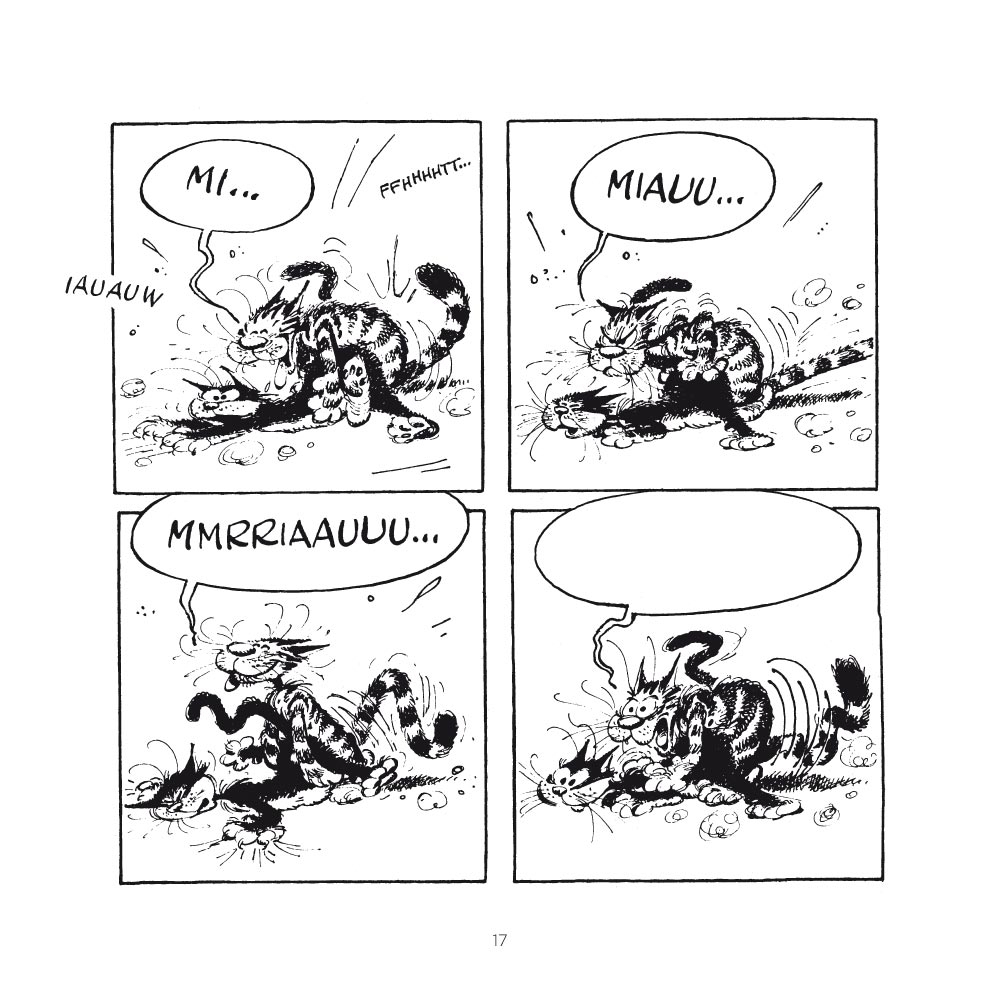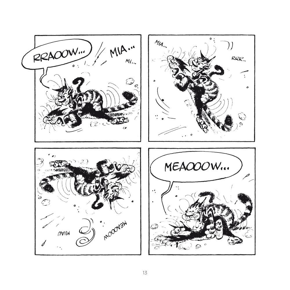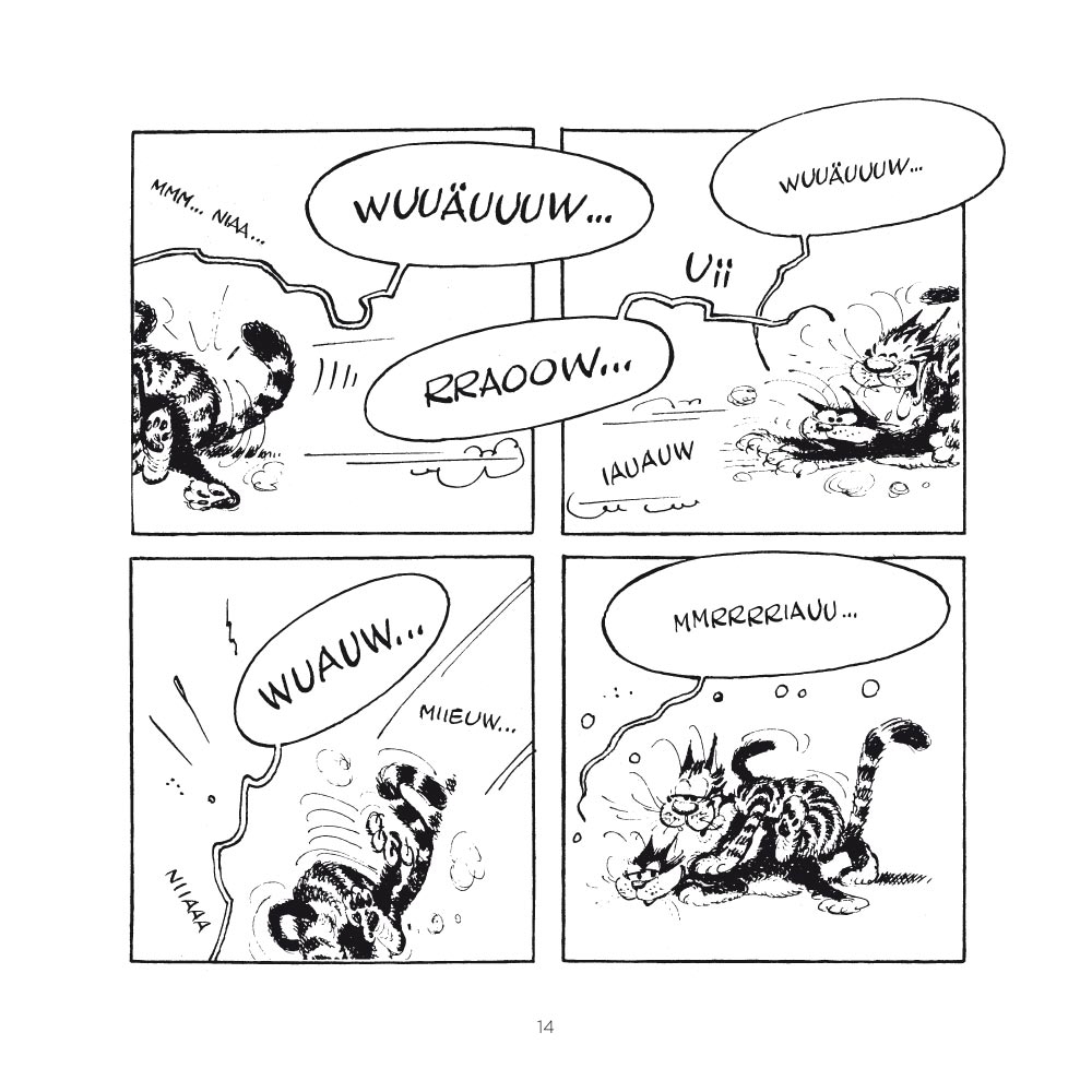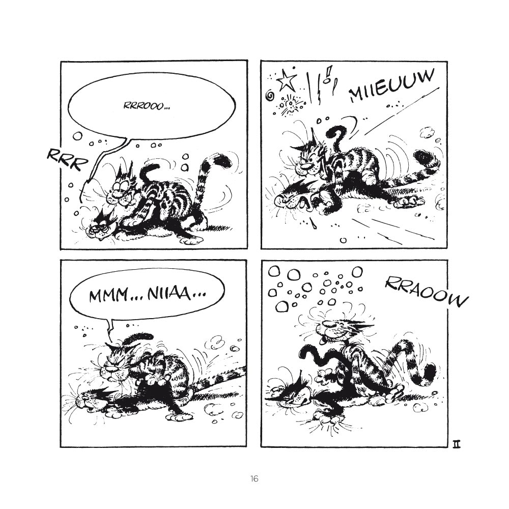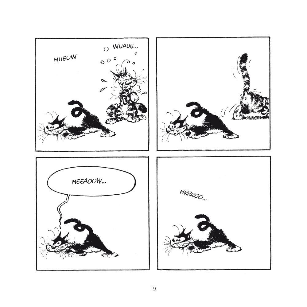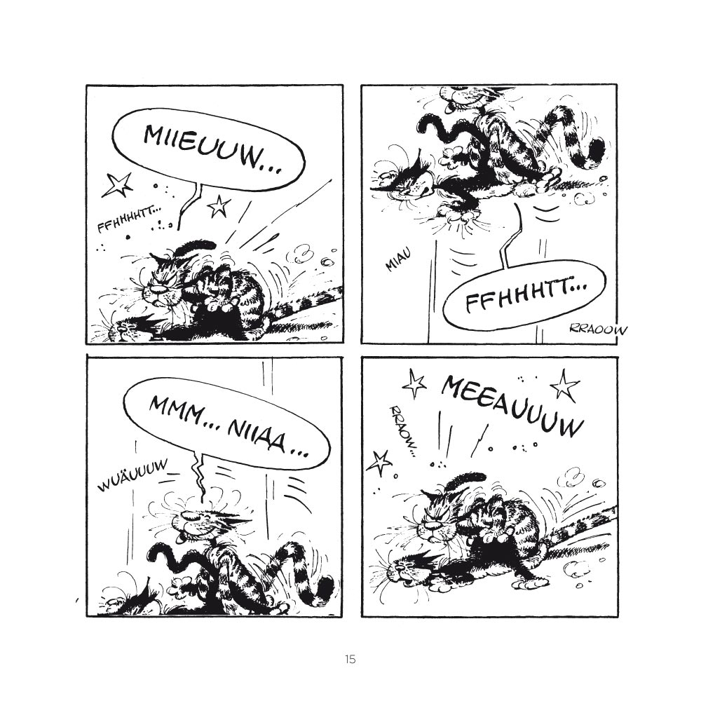 Der im Original auf drei Seiten angelegte Gag erschien im Februar 1977 und erlangte schnell Kultstatus. Diese liebevoll aufgemachte Ausgabe umfasst neben dem humorvollen Treiben der beiden Stubentiger reichhaltiges Zusatzmaterial, welches unter anderem die Zusammenarbeit von Franquin und Gotlib beleuchtet.