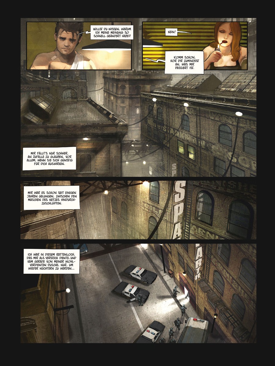 Vor dem Hintergrund einer atemberaubend inszenierten Noir-Stadt beginnt ein düsterer Mystery-Thriller mit allem, was dazu gehört. Coole Typen, schöne Frauen, geheimnisvolle Fremde, Blei, Blut… und Tomatenketchup.