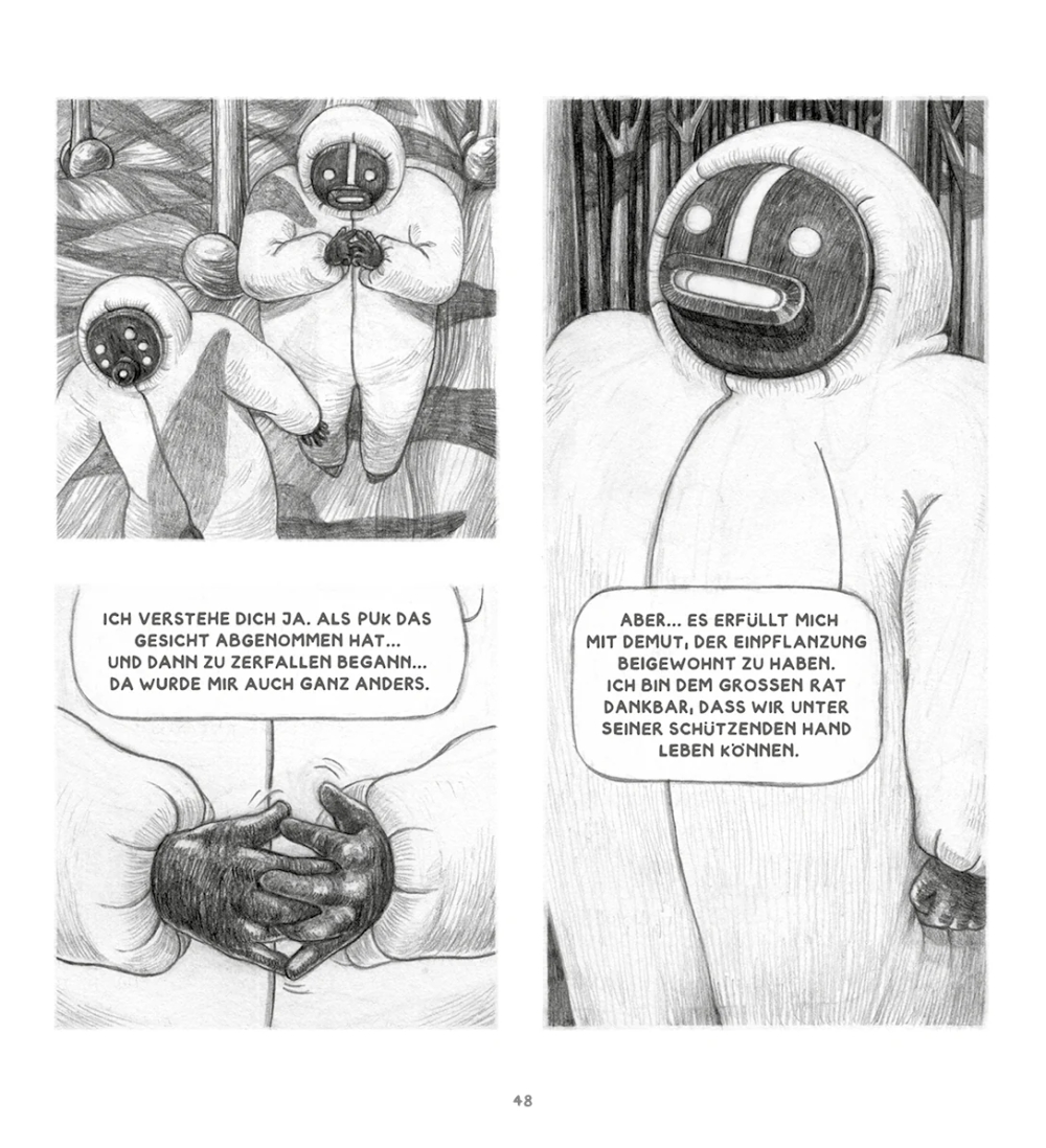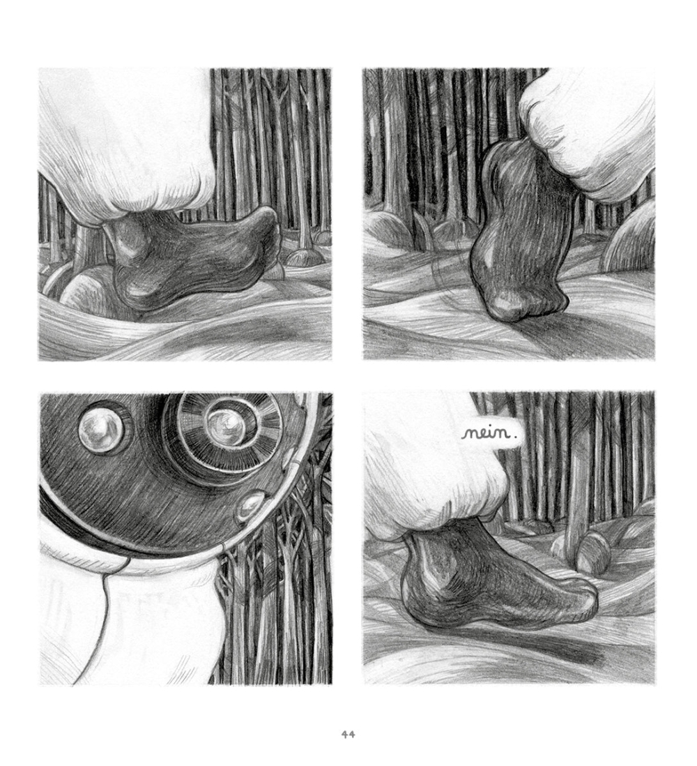 In meisterhaften, detailreichen Bleistiftzeichnungen entführt uns dieses stimmungsvolle Debüt der Hamburger Zeichnerin Judith Kranz in eine geheimnisvolle Welt, die an die Manga von Hayao Miyazaki („Nausicaä aus dem Tal der Winde“) ebenso gemahnt wie an die Zeichenwelten von Anke Feuchtenberger („Genossin Kuckuck“).