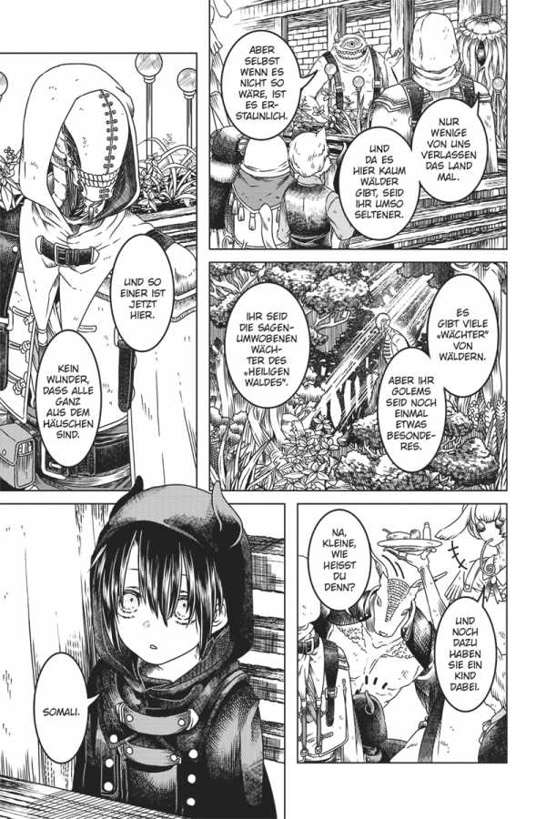 Doch tief in einem Wald trifft ein Golem auf ein junges Mädchen. Der Golem ist ein Hüter des Waldes, der nur noch ein Jahr zu leben hat. Das Mädchen ist ein Mensch. Gemeinsam brechen die beiden auf, um die letzten Menschen zu finden …