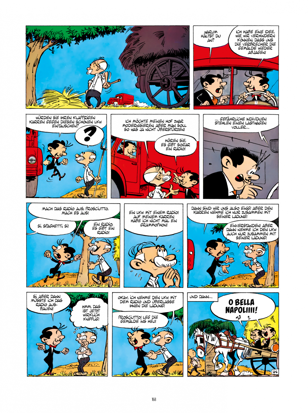 Nach etlichen kurzen Episoden trat Spaghetti ab 1959 auch in von Goscinny getexteten längeren Geschichten auf, in denen er an der Seite seines Cousins Prosciutto, einer unverbesserlichen Nervensäge, die verrücktesten Abenteuer erlebt.