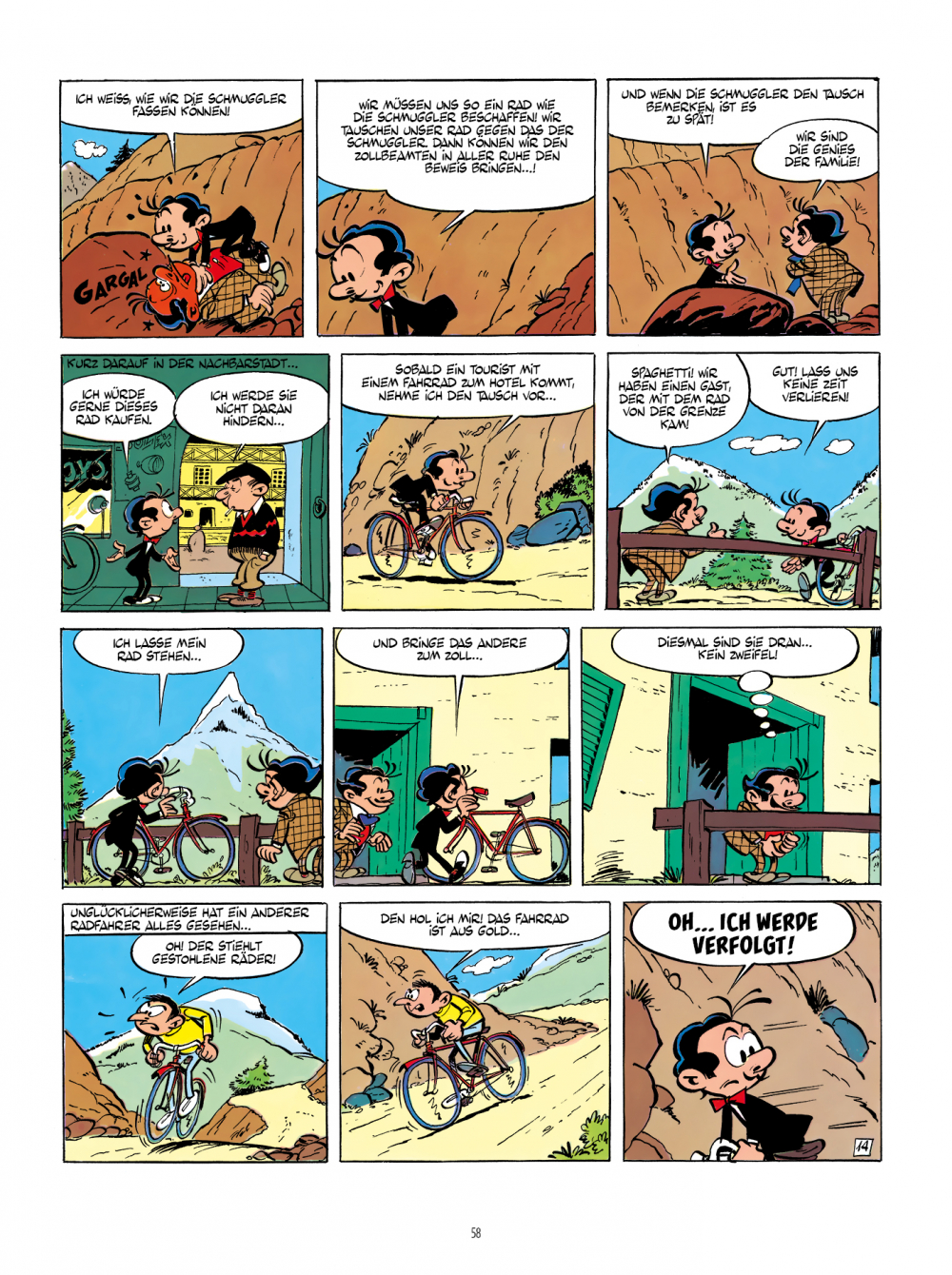 Seit Goscinnys und Attanasios sympatischer Held Spaghetti zufällig auf seinen Cousin Prosciutto gestoßen ist, gerät er von einem aberwitzigen Abenteuer ins nächste. Zur Freude der Leser verfügt die Nervensäge Prosciutto über das ausgeprägte Talent, den Sohn der Schwester seiner Mutter in dubiose Geschäfte zu verwickeln. Ein Hang zur Tollpatschigkeit, gepaart mit einer guten Portion Naivität, führt dazu, dass es die beiden bei ihren geschäftlichen Unternehmungen bisweilen mit durchtriebenen Schurken zu tun bekommen.<