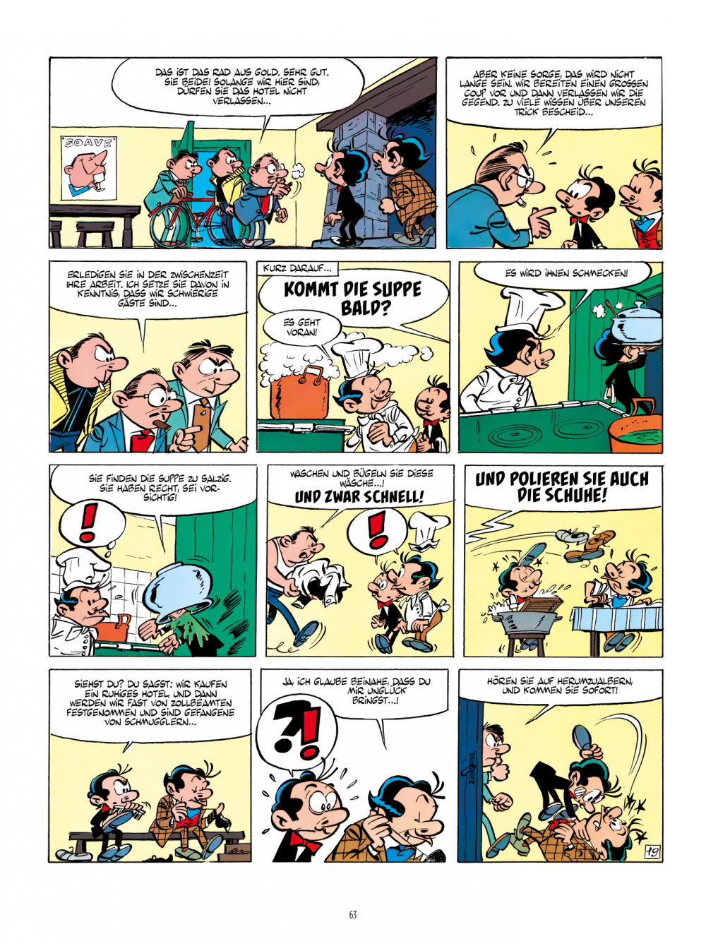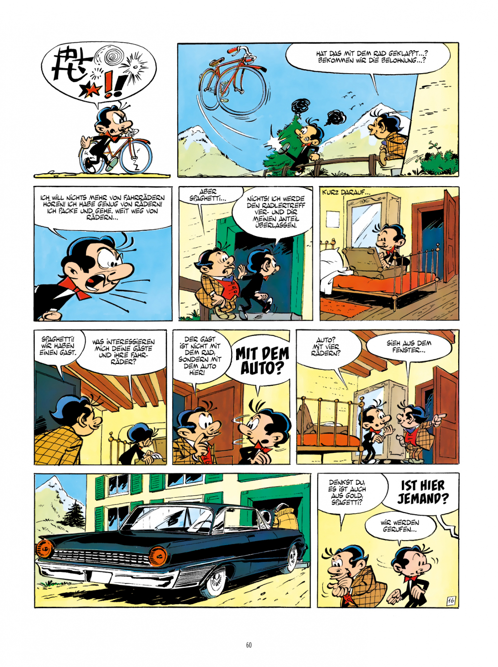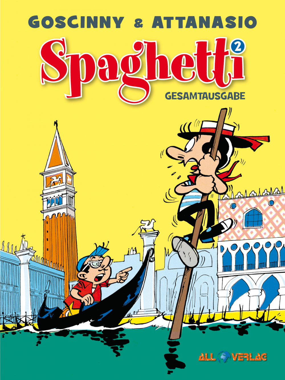 Dieser zweite Band der opulent aufgemachten Spaghetti-Gesamtausgabe präsentiert die in den Jahren 1961 und 1962 für das Journal de Tintin entstandenen albumlangen Geschichten, in denen sich der Titelheld und sein Cousin unter anderem als Betreiber eines sehr abgelegenen Hotels versuchen und in Venedig als ebenso verdeckte wie sangesfreudige Ermittler reüssieren.