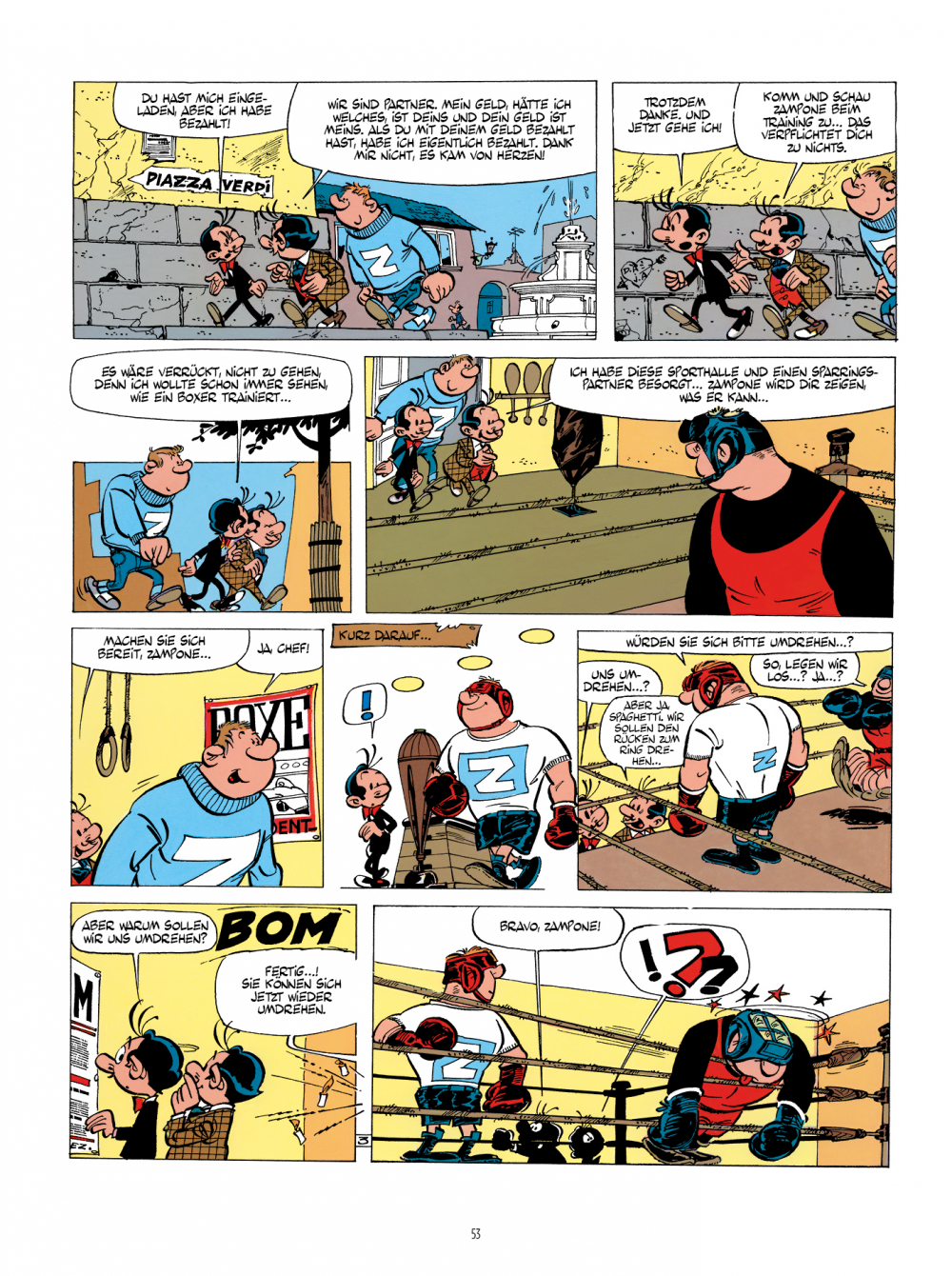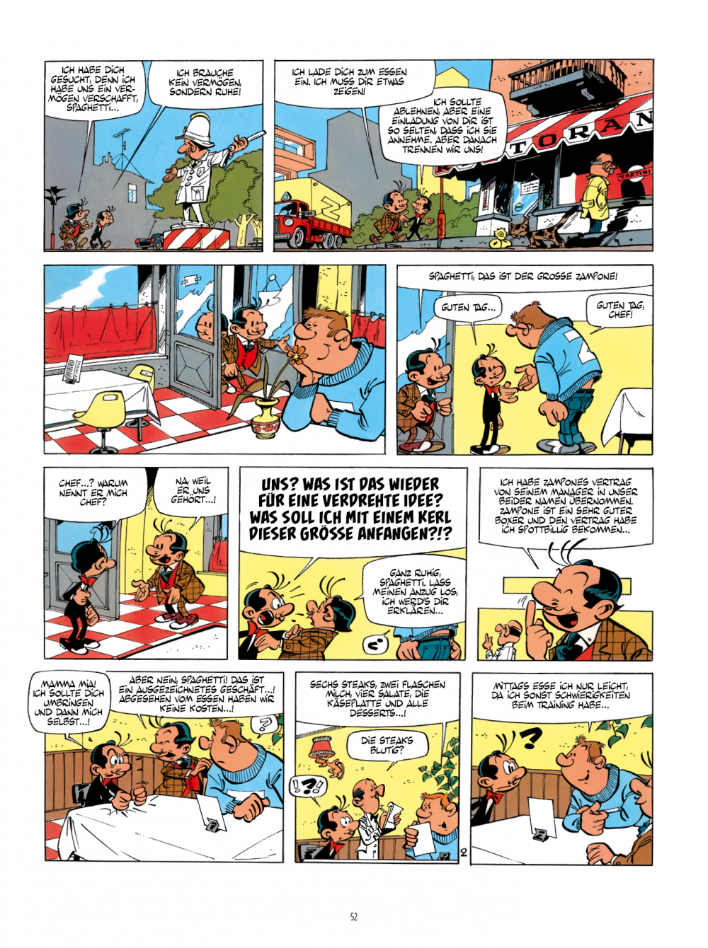 Dieser dritte Band der opulent aufgemachten Spaghetti-Gesamtausgabe präsentiert die in den Jahren 1963 und 1964 für das Journal de Tintin entstandene albumlange Geschichten, in denen sich der Titelheld und sein Cousin unter anderem aufgrund eines Missverständnisses als »die klügsten Menschen des Jahrhunderts« in der arabischen Welt wiederfinden oder mit großem Engagement in die faszinierende Welt des Boxsports eintauchen.
