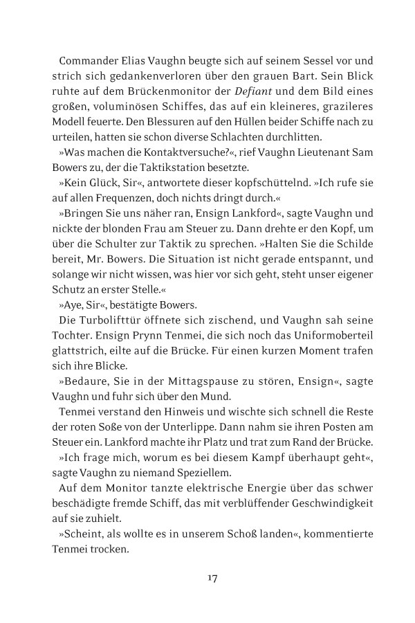 Das Raumschiff Defiant begibt sich derweil auf die Heimreise nach DS9, und ein schockierter Commander Elias Vaughn erkennt die Wahrheit hinter der tragischsten Mission seines langen Lebens. Während sich die Mannschaft den Folgen dieser Entdeckung stellt, gerät Vaughns Urteilskraft in Zweifel...und das Ergebnis der historischen Reise durch den Gamma-Quadranten steht erneut auf dem Spiel.