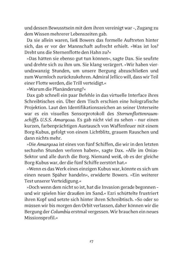 Jean-Luc Picard von der U.S.S. Enterprise, William T. Riker von der U.S.S. Titan und Ezri Dax von der U.S.S. Aventine kämpfen gemeinsam gegen den größten Feind der Föderation: die Borg. Welten gehen unter, Helden werden sterben. Nach dieser fulminanten Crossover-Trilogie ist im STAR TREK-Universum nichts mehr wie vorher!