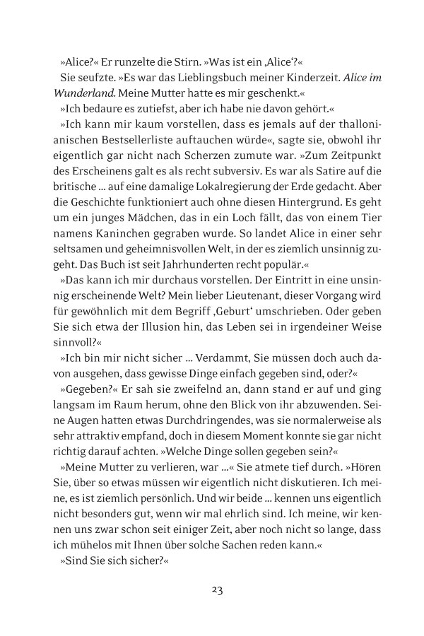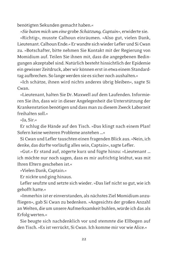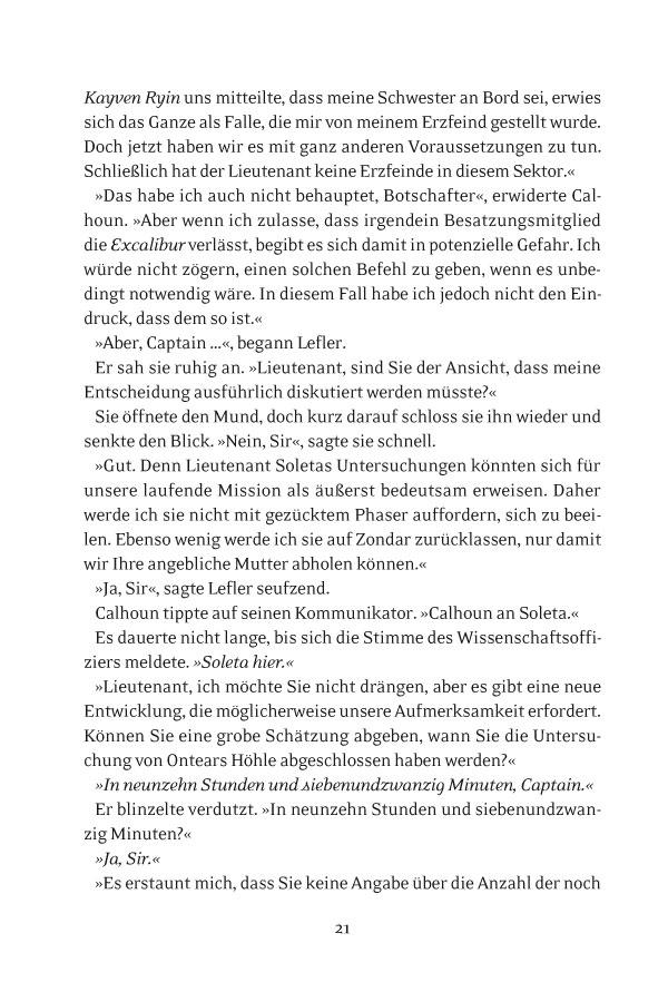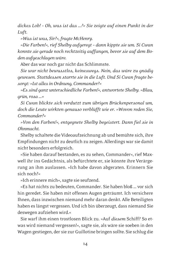 Auf dem Planeten Armista sitzt eine namenlose Frau. Hoch oben auf einem Berg drückt sie eine Waffe an sich, die anders ist als alles, was die Armistaner je gesehen haben. Sie wiegt sich vor und zurück und singt leise vor sich hin. Die Waffe ist ihre einzige Gesellschaft auf dem Planeten, da alle anderen nur noch kleine Aschehaufen sind. Eine Waffe, die alles Leben auf einem Planeten auslöschen konnte, könnte es erneut tun. Lieutenant Robin Leflers Mutter kam vor zehn Jahren bei einer Shuttleexplosion ums Leben. Kann sie also tatsächlich die Frau sein, die in thallonianischem Raum gefangen gehalten wird? Wenn sie es ist, welche Verbindung hat sie dann zu der mysteriösen Frau, die eine Waffe besitzt, die ganze Welten vernichten könnte? Milliarden Leben stehen auf dem Spiel, und Robin Lefler, Captain Calhoun und die Mannschaft der Excalibur müssen Antworten finden, bevor ihnen und den ums Überleben kämpfenden verbliebenen Bewohnern des einst so bedeutenden Thallonianischen Imperiums die Zeit davonläuft.