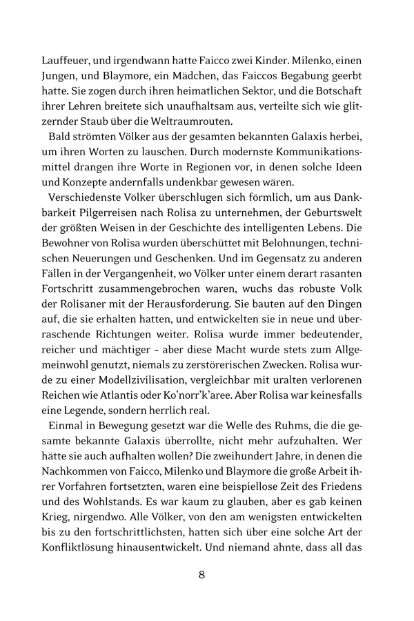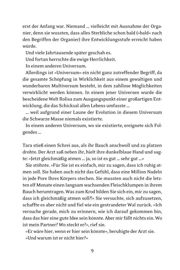 Calhoun, der mit der Rückkehr seines rebellischen Sohnes mehr als genug zu tun hat, ist nicht besonders erpicht darauf, seinem despotischen Feind zu Hilfe zu eilen, aber als unschuldige Leben bedroht werden, hat er keine andere Wahl, als sich der unaufhaltsamen Schwarzen Masse zu stellen. Aber wie soll ein einziges Raumschiff eine Macht abwehren, die in der Lage ist, ganze Sonnen zu verzehren?
