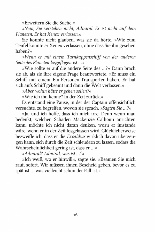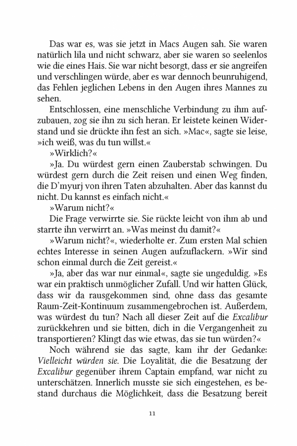 Calhouns Suche führt die Besatzung der Excalibur in ein Taschenuniversum, wo er nicht nur die Heimatwelt der D’myurj entdeckt, sondern auch ein anderes Volk, das Calhouns Entschlossenheit teilt, seine Gegner auszulöschen.