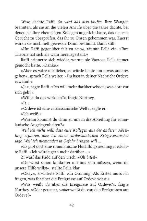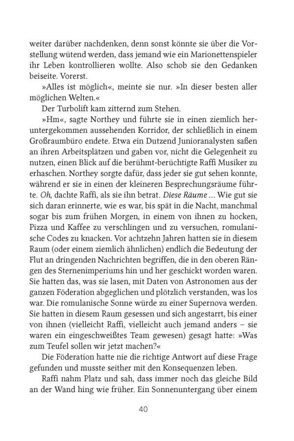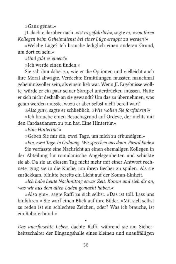 Nach den explosiven Ereignissen in der ersten Staffel von Star Trek: Picard ist Raffi Musiker hin- und hergerissen zwischen der Rückkehr in ihr altes Leben als Geheimdienstoffizierin der Sternenflotte und einer etwas harmloseren Tätigkeit – vielleicht als Lehrerin an der Akademie. Die Entscheidung wird ihr jedoch abgenommen, als sie eine Nachricht von einem alten Kontakt – einem romulanischen Spion – erhält, der sie um sofortige Hilfe bittet. Mit der Hilfe von Cristobal Rios und Dr. Agnes Jurati und der Unterstützung von Jean-Luc Picard beschließt Raffi, diese kritische Mission zu übernehmen – und findet schnell heraus, dass die Sünden der Vergangenheit nie begraben bleiben. Die Suche nach der Wahrheit wird kompliziert und tödlich sein …
