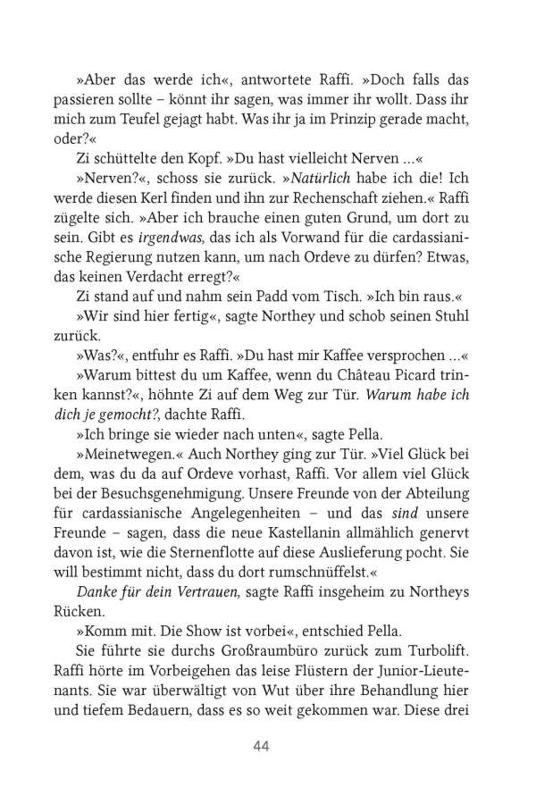 Nach den explosiven Ereignissen in der ersten Staffel von Star Trek: Picard ist Raffi Musiker hin- und hergerissen zwischen der Rückkehr in ihr altes Leben als Geheimdienstoffizierin der Sternenflotte und einer etwas harmloseren Tätigkeit – vielleicht als Lehrerin an der Akademie. Die Entscheidung wird ihr jedoch abgenommen, als sie eine Nachricht von einem alten Kontakt – einem romulanischen Spion – erhält, der sie um sofortige Hilfe bittet. Mit der Hilfe von Cristobal Rios und Dr. Agnes Jurati und der Unterstützung von Jean-Luc Picard beschließt Raffi, diese kritische Mission zu übernehmen – und findet schnell heraus, dass die Sünden der Vergangenheit nie begraben bleiben. Die Suche nach der Wahrheit wird kompliziert und tödlich sein …