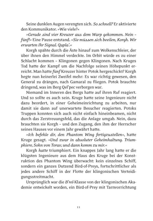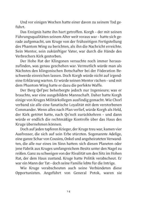 Als 2285 der klingonische Commander Kruge im Kampf gegen James T. Kirk auf dem Genesis-Planeten fiel, stürzte das ein mächtiges Haus ins Chaos – und es blieben einige tickende Zeitbomben zurück: Das Phantomgeschwader, eine geheime Einheit fortschrittlicher Bird-of-Preys; eine verschworene Gruppe loyaler Offiziere, die sein Erbe bewahren wollten; und der junge Korgh, sein abgesetzter Erbe, der bereit war, ein ganzes klingonisches Leben lang auf seine Vergeltung zu warten.