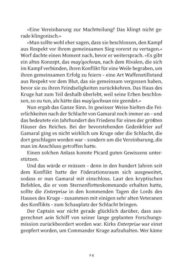 Jetzt, einhundert Jahre später, geraten Captain Jean-Luc Picard und die Besatzung der U.S.S. Enterprise während einer diplomatischen Mission für die Vereinigte Föderation der Planeten in die Falle des gealterten Korgh – und finden sich mitten in einer uralten Auseinandersetzung wieder. Aber Commander Worf muss bald feststellen, dass Korgh möglicherweise weitaus größere Ziele verfolgt, als sich irgendwer vorstellen konnte. Damit stürzt er die Allianz zwischen der Föderation und den Klingonen in eine Krise, wie sie sie noch nie erlebt hat!