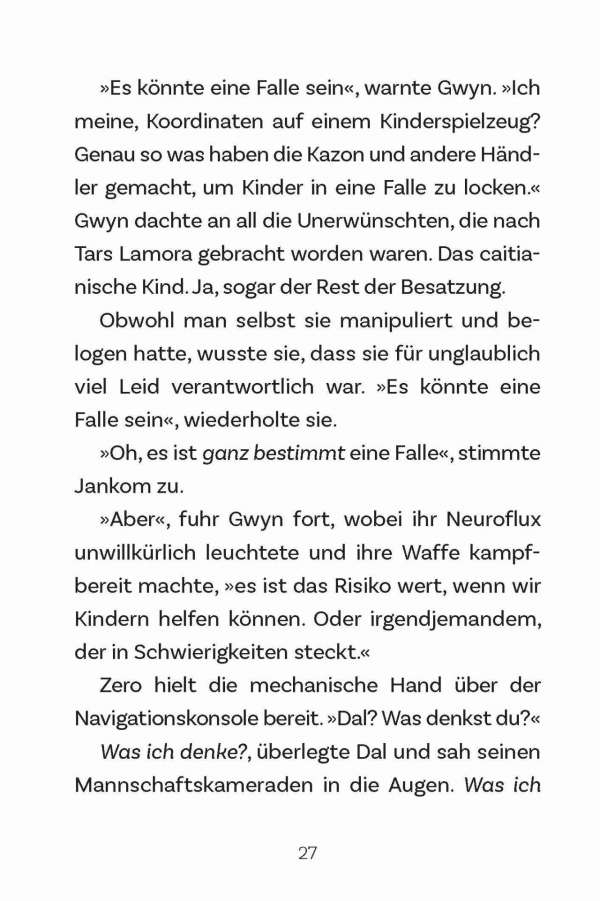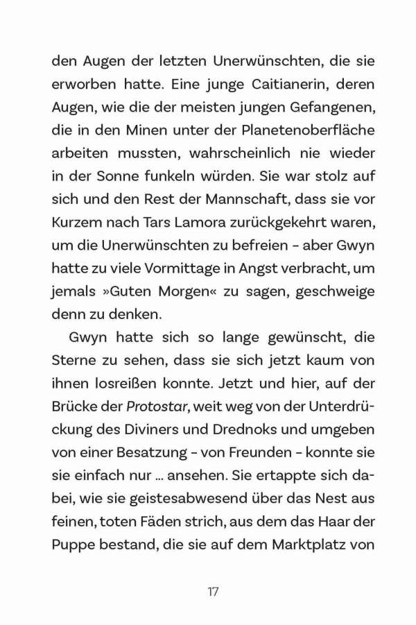 Nach der Notlandung in einem seltsamen Sternsystem wird die Besatzung der Protostar getrennt. Gemeinsam versuchen Dal und Gwyn, die anderen wiederzufinden. Doch es bleibt ihnen nicht viel Zeit: die Sonne des Systems ist instabil und kurz davor, sich in eine Supernova zu verwandeln. Dann stoßen Dal und Gwyn auch noch auf eine Patrouille böse Roboter, die genauso aussehen wie die Wächter in Tars Lamora. Wie werden die beiden mit diesem Albtraum aus ihrer Vergangenheit umgehen … und die Explosion des Planeten verhindern?