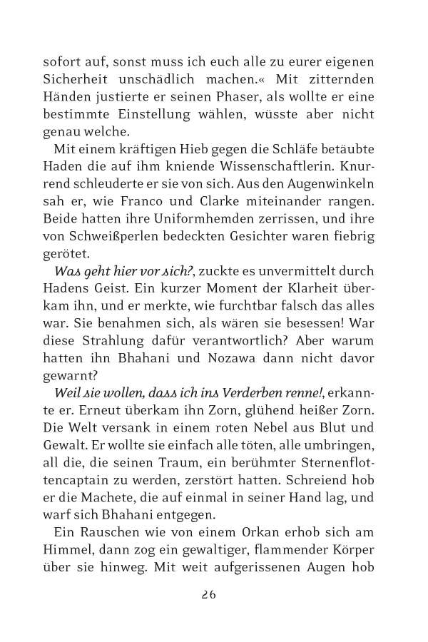 Wer steckt hinter den Angriffen? Sind es Fanatiker aus dem fremdartigen Volk der Renao, das im benachbarten Lembatta-Cluster siedelt? Oder hat der zwielichtige Typhon-Pakt seine Finger im Spiel? Die Sternenflotte entsendet die U.S.S. Prometheus, ihr kampfstärkstes Schiff, in die Grenzregion, um das Rätsel zu lösen, bevor der nächste Krieg in der Galaxis ausbricht.