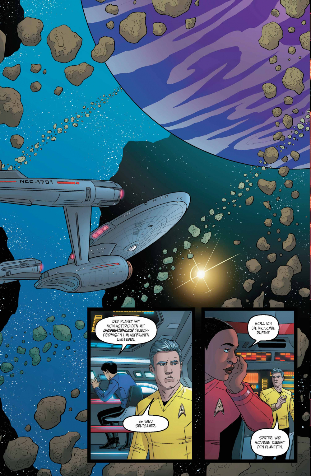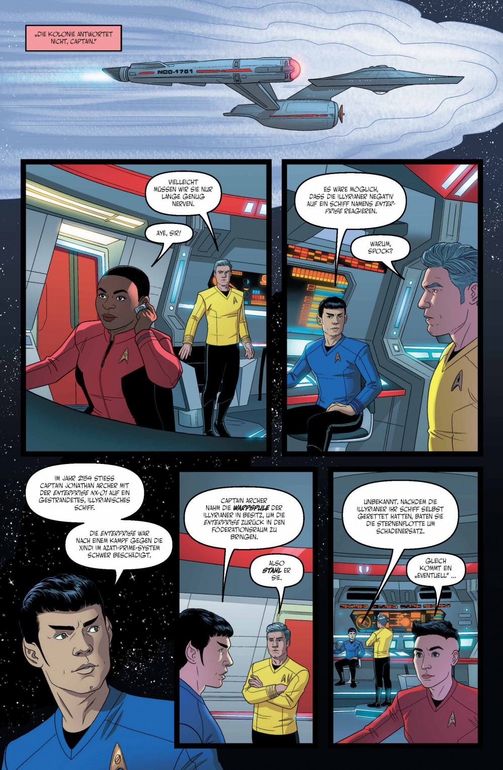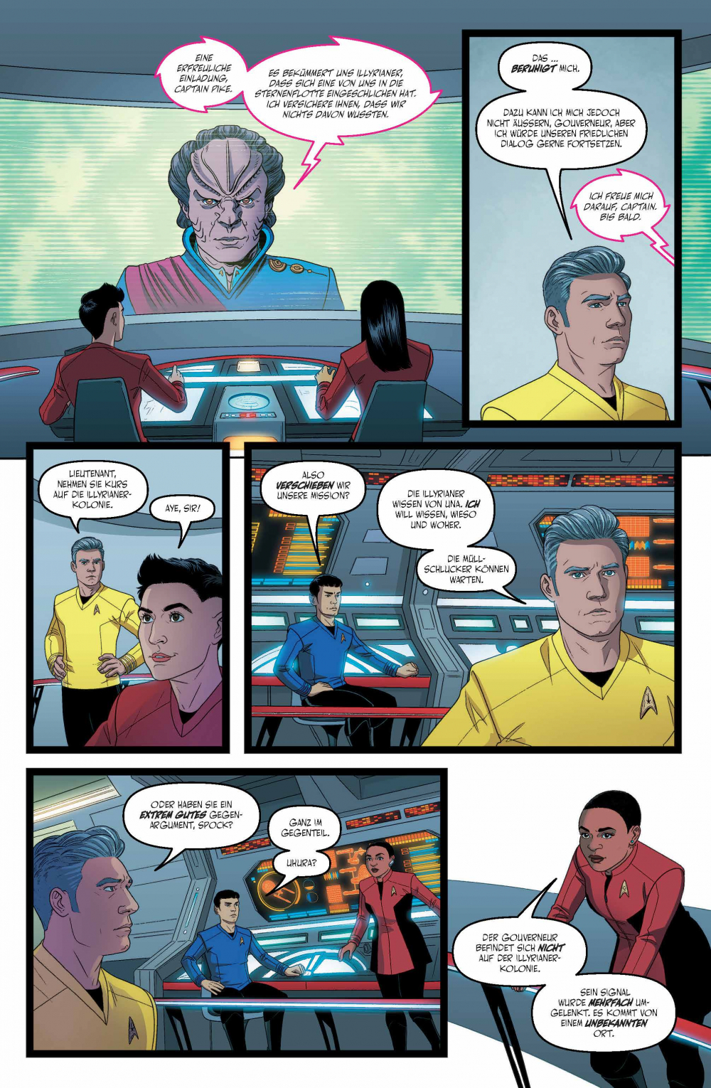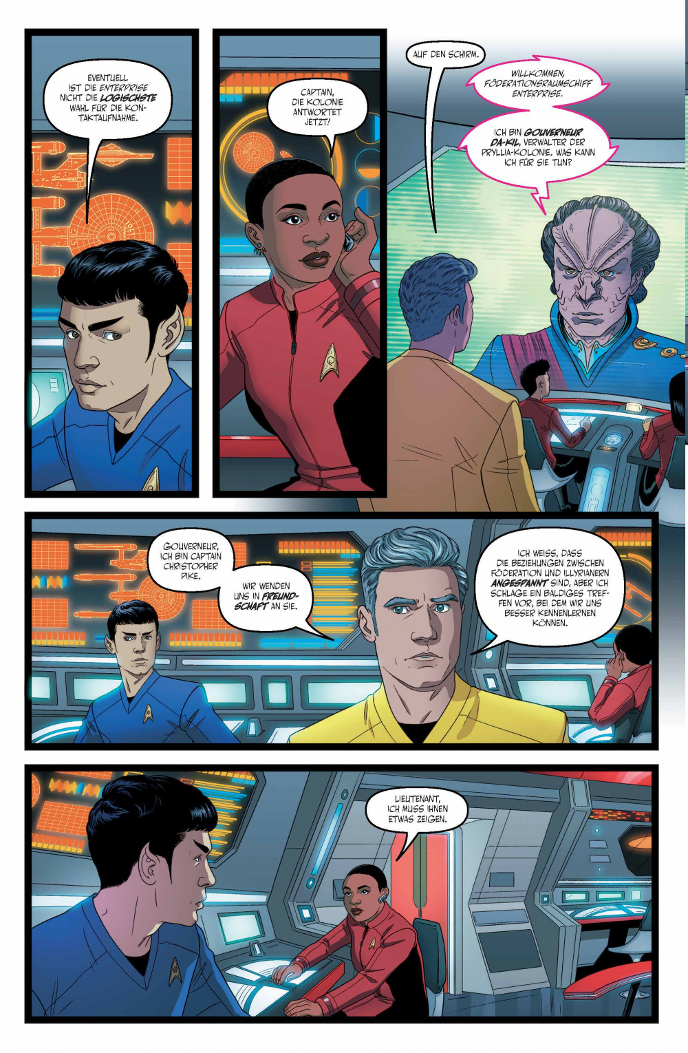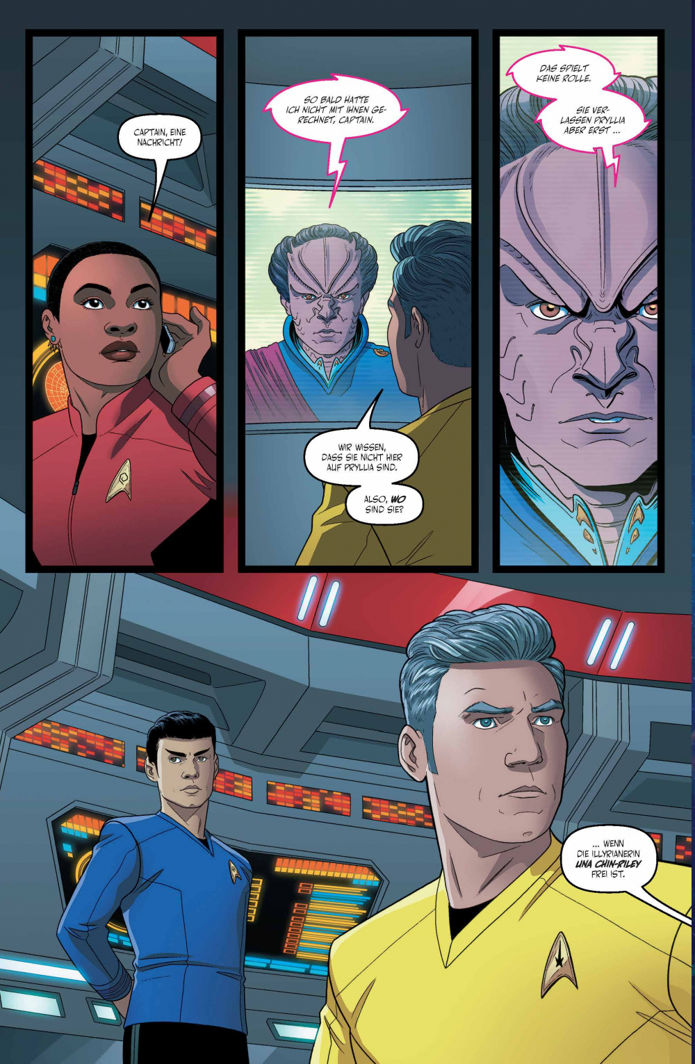 Dieses offizielle Comic-Beiwerk zur beliebten Paramount+-Serie Strange New Worlds, dessen Plot zwischen den Staffeln eins und zwei spielt, entführt Fans auf eine abenteuerliche Reise zu neuen Ufern: Als Una von der Sternenflotte der unrechtmäßigen genetischen Veränderung beschuldigt wird, macht sich Captain Pike auf die Suche nach Beweisen, die ihre Unschuld beweisen sollen. Als Captain Pike und die Besatzung der Enterprise dann aber in der Kolonie Pryllia, der Heimat der illusorischen Illyrianer, festgehalten werden, verlagert sich das Ziel der Mission schnell von der Sammlung von Beweisen zu ... einem waschechten Ausbruch.