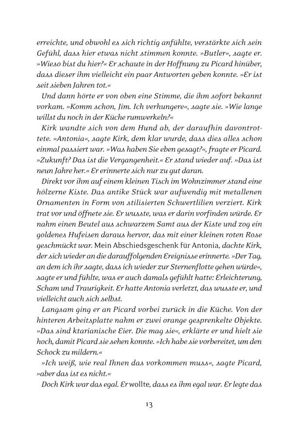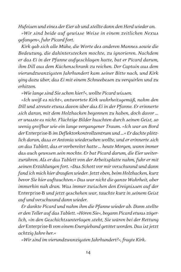 In einem einzigen Augenblick … lässt der in der Zeit zurückversetzte James T. Kirk zu, dass die Liebe seines Lebens bei einem Verkehrsunfall stirbt, um die Geschichte der Erde zu bewahren. Als er in die Gegenwart zurückkehrt, setzt er seine sagenumwobene Karriere als Raumschiffcaptain, der die Galaxis erforscht, fort. Doch während er zwischen den Sternen umherreist, bleibt ihm das Glühen, das einst sein Herz erfüllte, verwehrt. In einem einzigen Augenblick ... … der James T. Kirk sein ganzes Leben lang verfolgt, bewahrte er die Zeitlinie auf Kosten seines Glücks. Nun, im Angesicht seines eigenen Todes, zerfällt der Stoff der Existenz über Jahre und Lichtjahre und zwingt ihn, gegen – und durch – die Zeit selbst zu rennen, bis er schließlich zu dem einen hellen Stern zurückkehrt, der seinem Leben stets den Weg gewiesen hat.