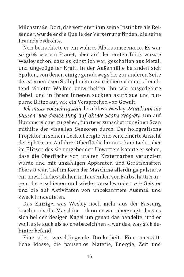Im Zentrum der Galaxis taucht eine gewaltige Maschine auf, groß wie ein Planet, und niemand weiß, woher sie gekommen ist. Ganze Sternensysteme stürzt sie in ein riesiges Schwarzes Loch. Die Enterprise-Crew findet den wahren Zweck der Maschine heraus – und sie stellt eine Bedrohung allen Lebens in der Galaxis dar. Als die Zeit immer knapper wird, begreift Picard, dass es nur eine Person gibt, die es schaffen könnte, die Maschine rechtzeitig aufzuhalten und die galaktische Katastrophe abzuwenden. Aber er hat keine Ahnung, wo er ihn finden kann …