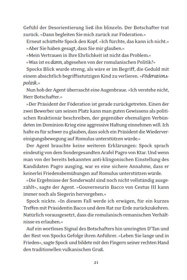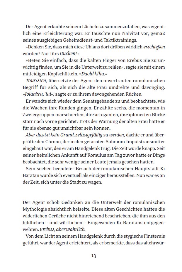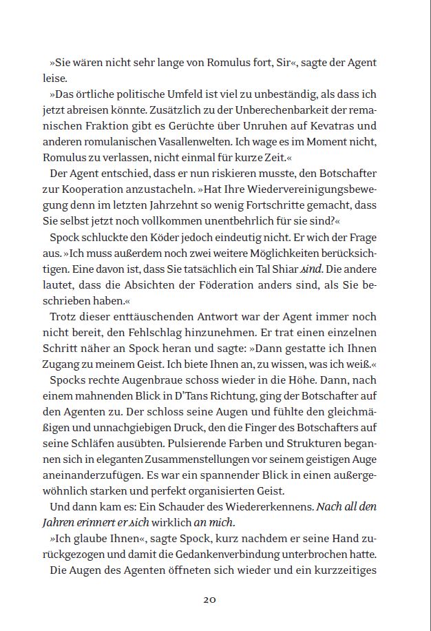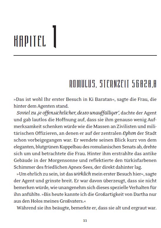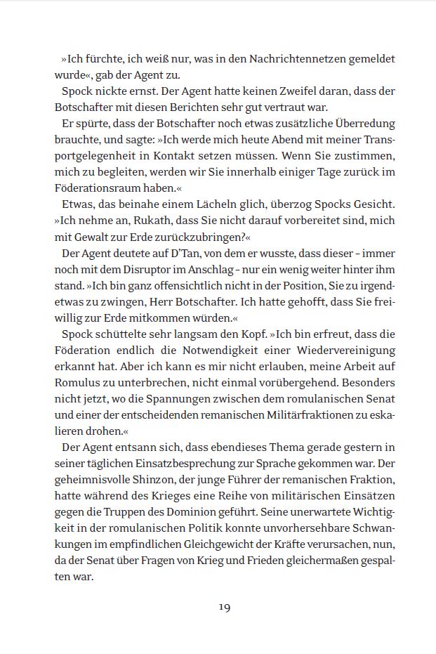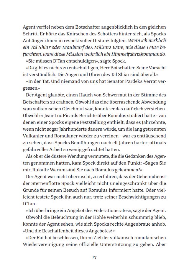 Um die Ordnung wieder herzustellen, wird die langerwartete Forschungsmission der Titan verschoben. Riker soll die Verhandlungen über Machtverteilung zwischen den romulanischen Fraktionen leiten. Währenddessen organisieren sich Teile des Tal Shiar, des gefürchteten romulanischen Geheimdienstes, hinter den Kulissen neu, um ihr eigenes Machtspiel zu spielen ...