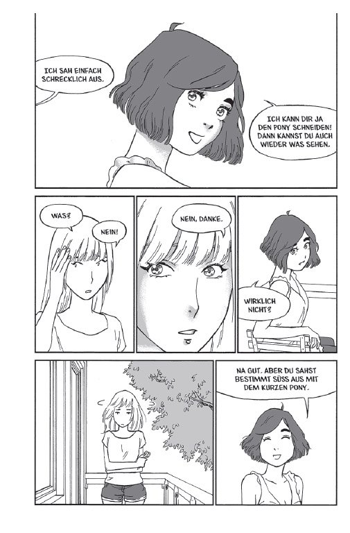 “Sterne Sehen” ist eine auf zwei Bände angelegte Geschichte, in der Asja Wiegand zeichnerisch zu ihren Wurzeln als Maga-Zeichnerin zurückkehrt. Dabei überlässt Sie im ersten Teil dieser sommerlichen Geschichte es noch der Leserschaft zu entscheiden, ob es sich hier um urbane Fantasy oder ein melancholisch erzähltes Freundschafts-Drama handelt. In beiden Fällen ist es auf jeden Fall die Phantasie, die entscheidet, wie weit sie gehen möchte.