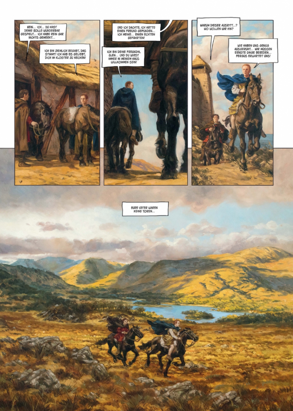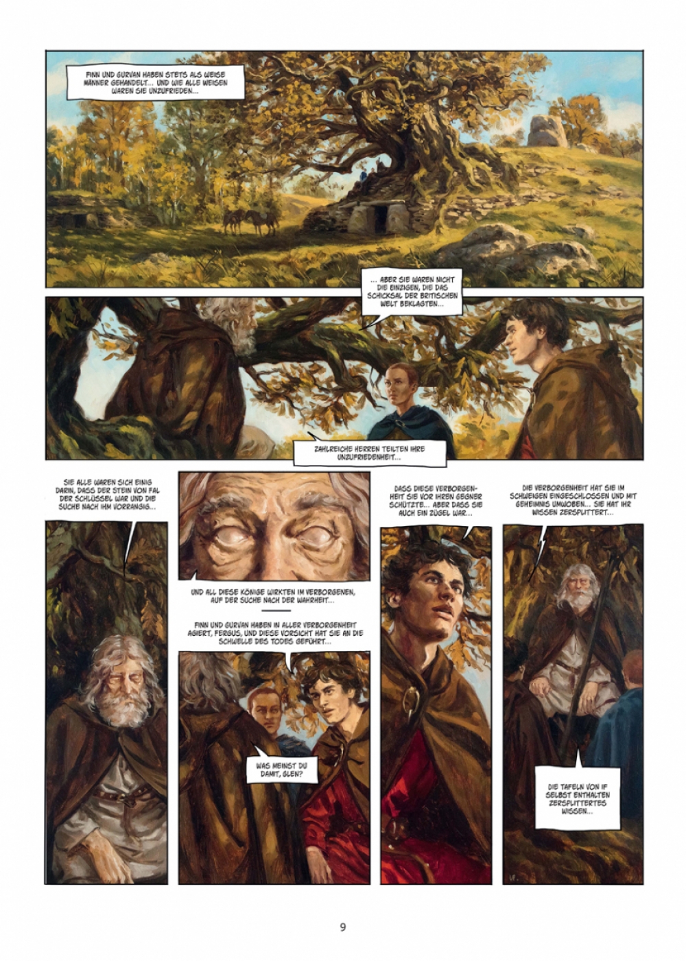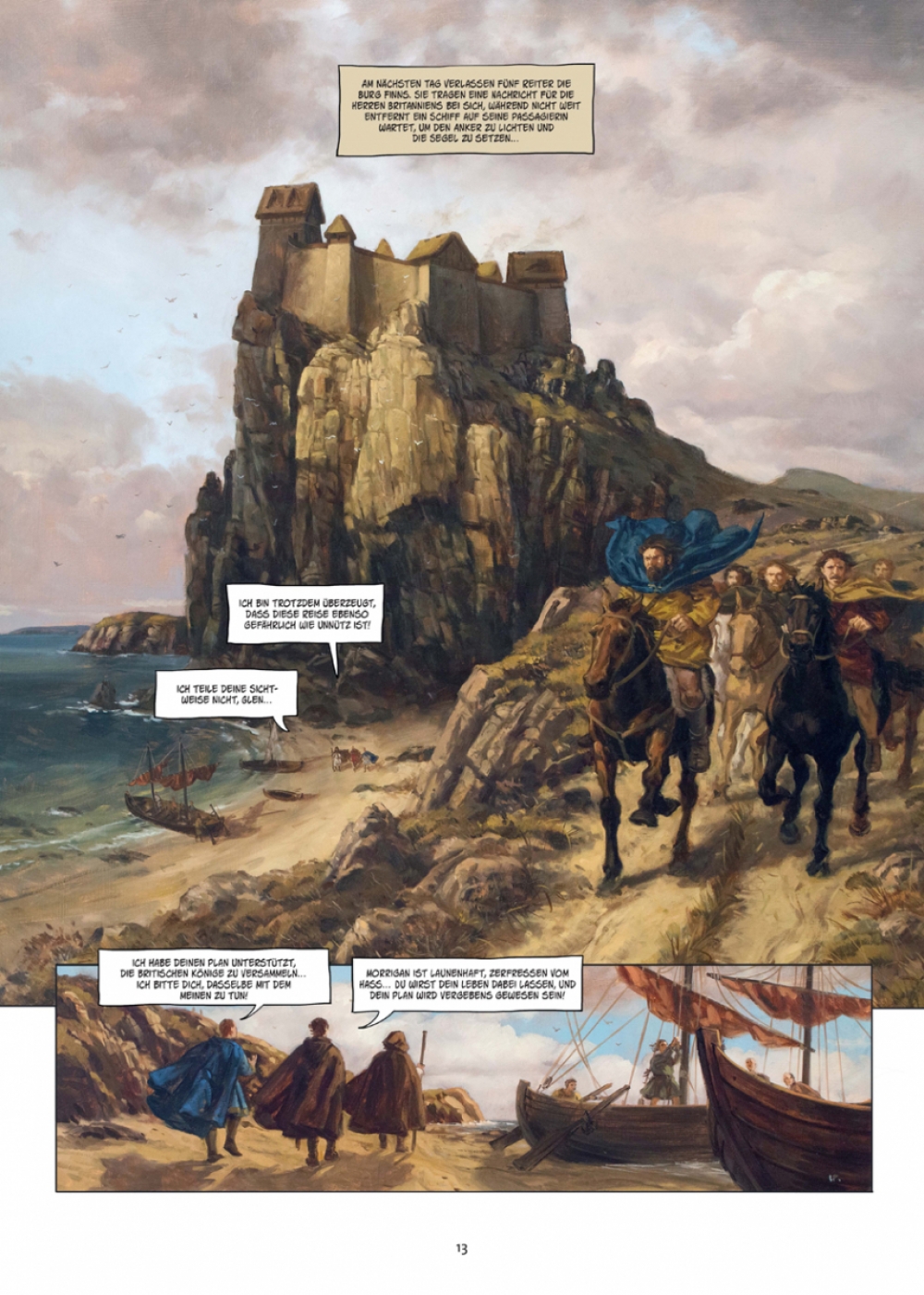 Eric Corbeyran (»Doppelgänger«, »Unter schwarzer Flagge«) und Ugo Pinson liefern ein faszinierendes Gemälde des keltischen Britanniens in der Völkerwanderungszeit, einer Ära des Über- und Untergangs. Eine Welt voll drohender Schatten und dunkler Intrigen, darin eine Suche nach einem übergroßen Vermächtnis. Von der ersten Seite an packend.
