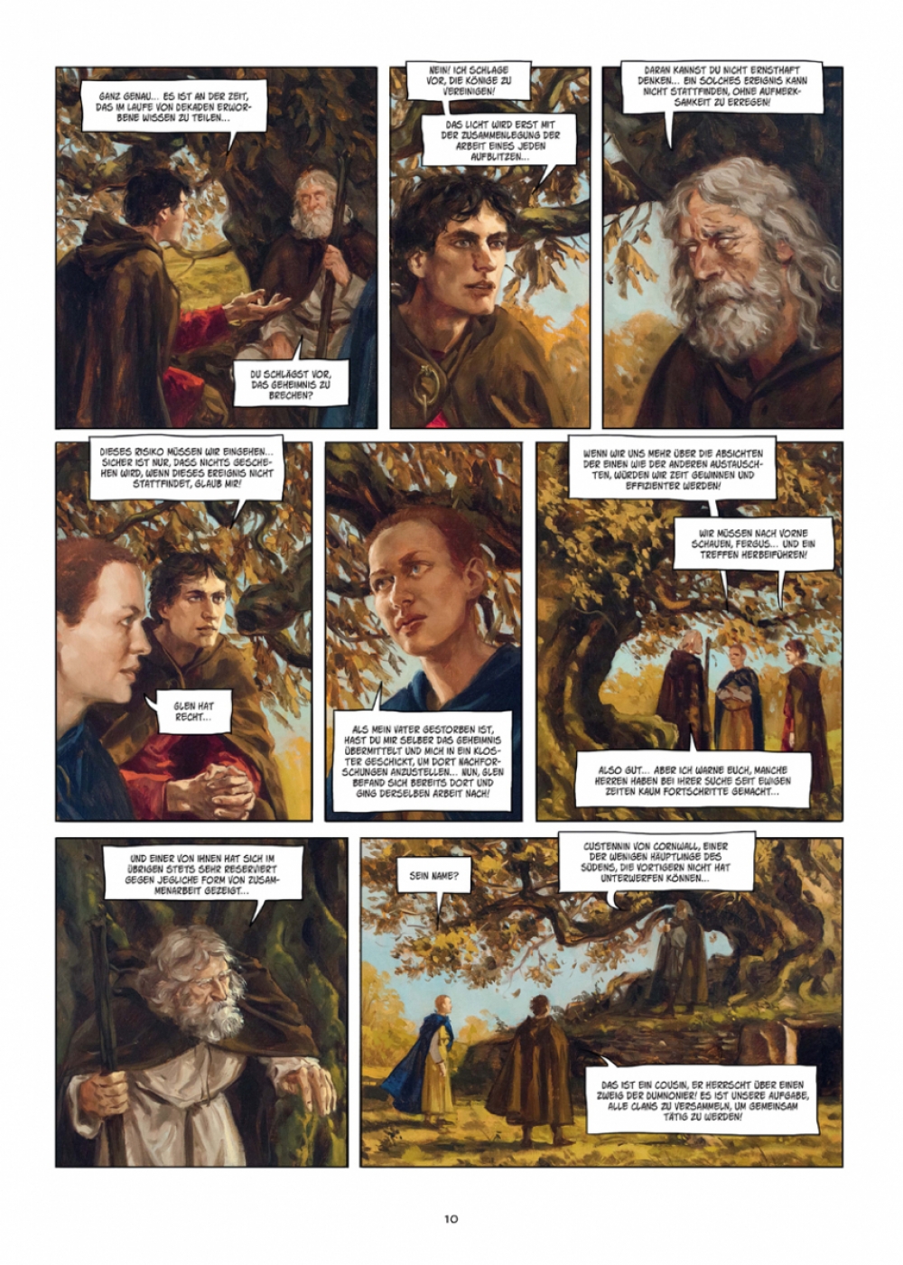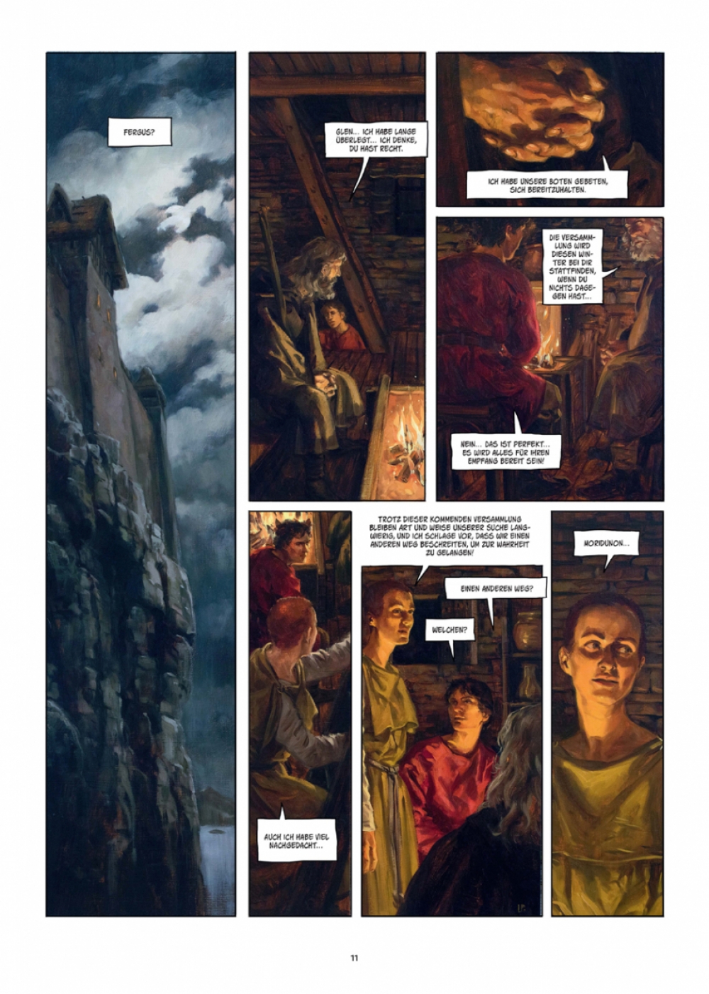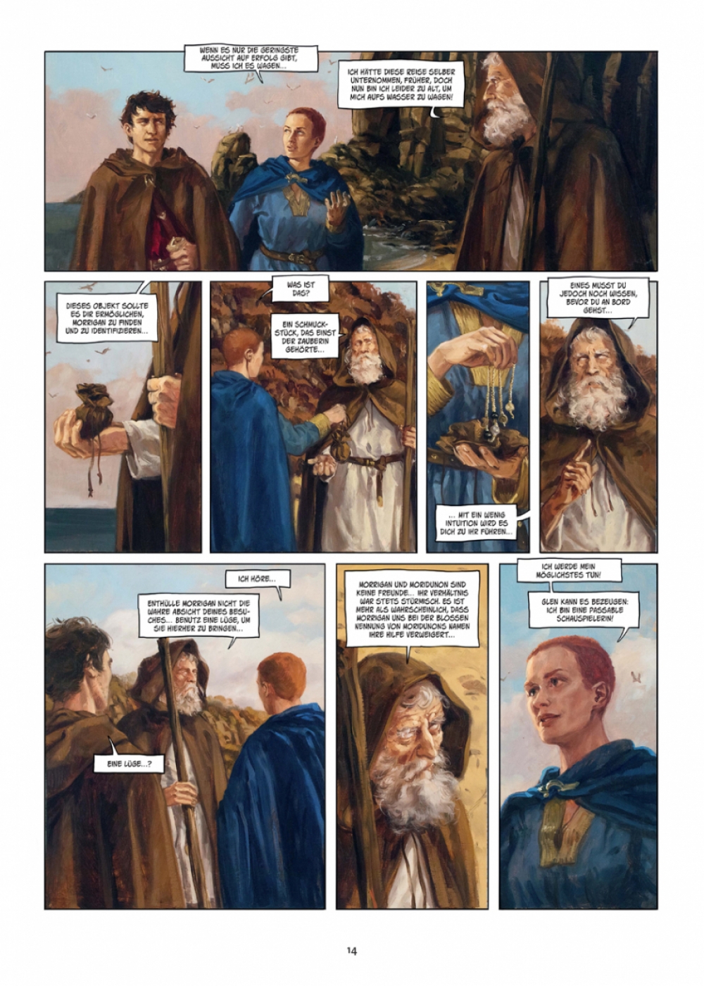 Eric Corbeyran (»Doppelgänger«, »Unter schwarzer Flagge«) und Ugo Pinson liefern ein faszinierendes Gemälde des keltischen Britanniens in der Völkerwanderungszeit, einer Ära des Über- und Untergangs. Eine Welt voll drohender Schatten und dunkler Intrigen, darin eine Suche nach einem übergroßen Vermächtnis. Von der ersten Seite an packend.